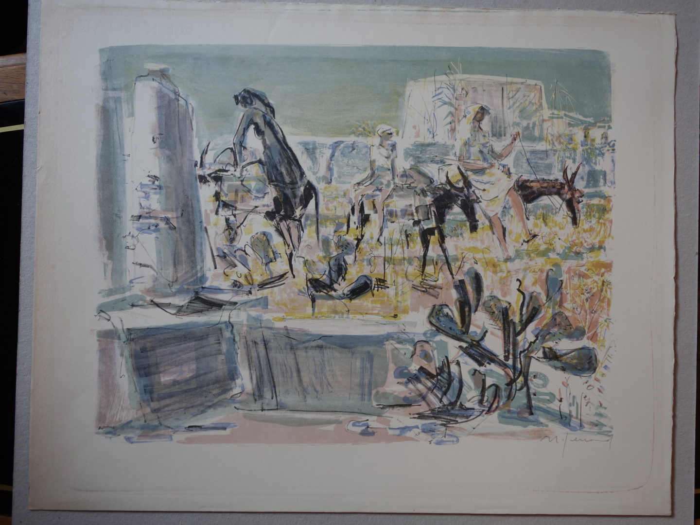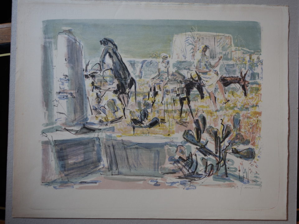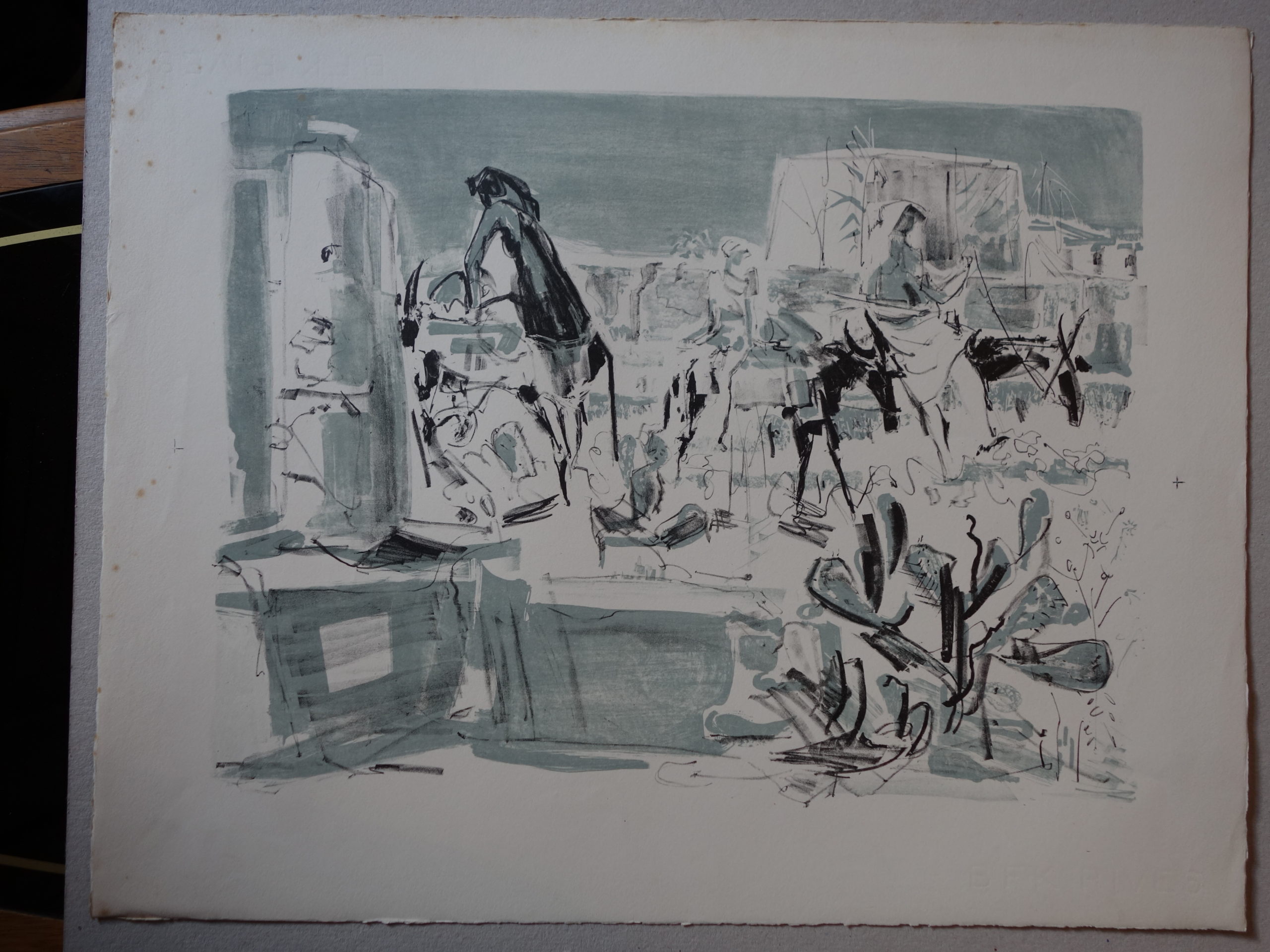 Trois personnages chevauchant des animaux à cornes Artiste GENOUD Nanette Numéro d'inventaire FAA-GN-2723 Titre inconnu Dénomination Trois personnages chevauchant des animaux à cornes Dimensions sur chassis 45.5x56 cm Technique / Support Lithographie, Couleur Catégories Scène de genre Signature / Datation "N. Genoud" Remarques - 2 épreuves couleur signées - 1 épreuve bi-color verte et noir - 1 épreuve mono-color rouge - 1 épreuve noir/blanc Agrandir l'image Découvrez l'artiste GENOUD Nanette (CH) 9 avril 1907 / 30 novembre 1987 Fonds géré par la FAA Consulter sa fiche Images complémentaires GENOUD Nanette – Trois personnages chevauchant des animaux à cornes – Lithographie, Couleur, 45.5x56 cm – Scène de genre