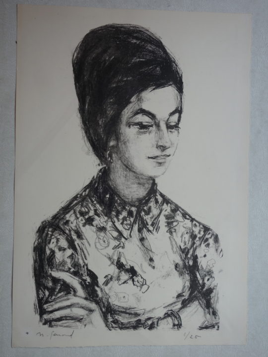 Portrait de jeune femme Artiste GENOUD Nanette Numéro d'inventaire FAA-GN-2769 Titre inconnu Dénomination Portrait de jeune femme Dimensions sur chassis 53.5x37 cm Technique / Support Lithographie Catégories Portrait Signature / Datation "n. Genoud", bg Remarques 1 épreuve noire, signée et justifiée "1/25/" 1 épreuve bleu nuit, signée et justifiée "11/25" 1 épreuve noire signée et justifiée "2/5" 3 épreuves noires signées 12 épreuves noires non signées Agrandir l'image Découvrez l'artiste GENOUD Nanette (CH) 9 avril 1907 / 30 novembre 1987 Fonds géré par la FAA Consulter sa fiche Images complémentaires GENOUD Nanette – Portrait de jeune femme – Lithographie, 53.5x37 cm – Portrait