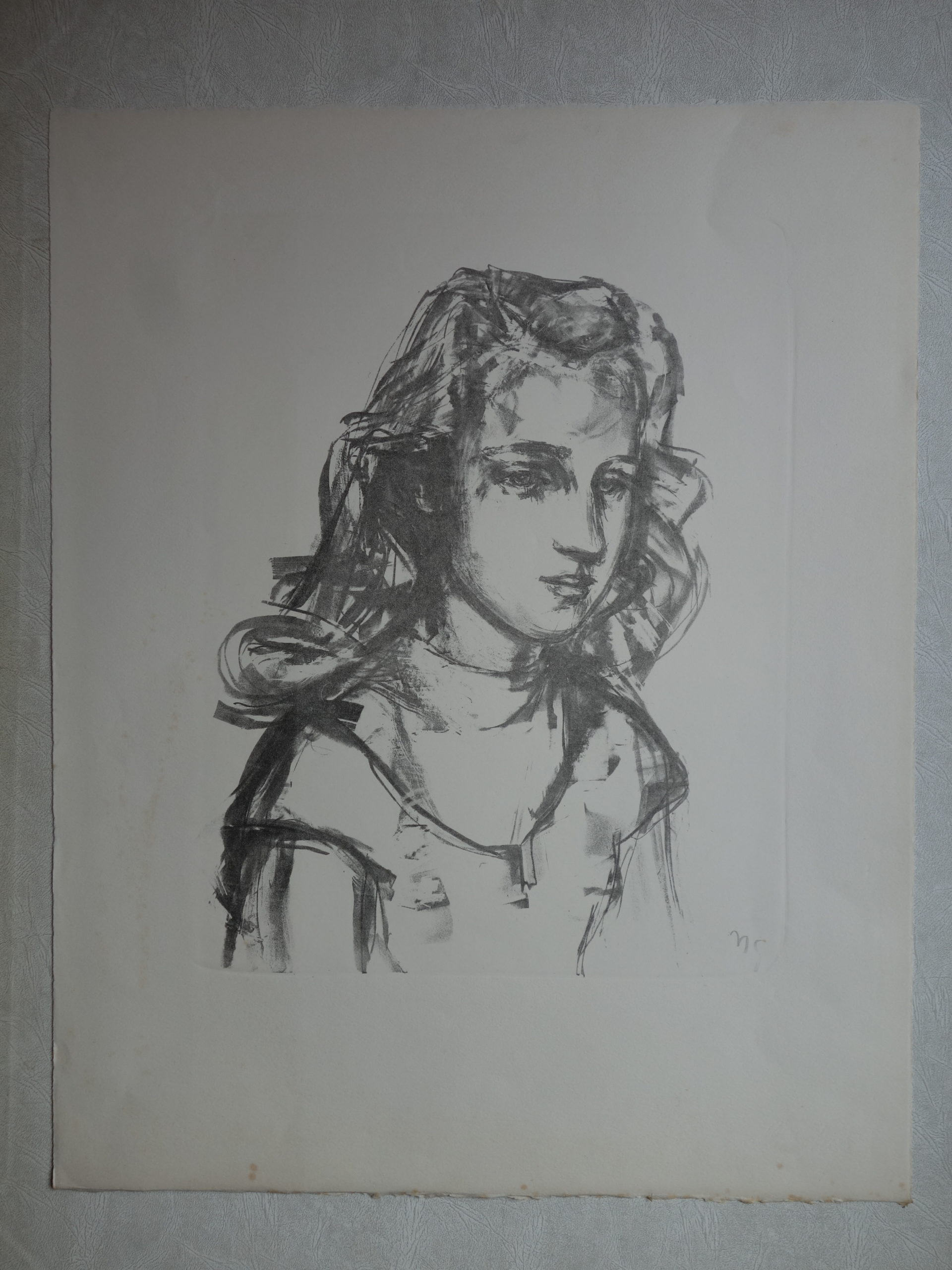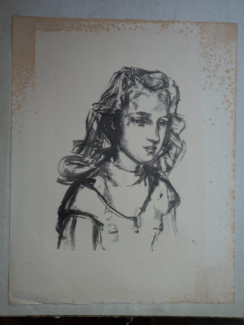 1 épreuve noire, signée dans la pierre, avec fortes traces d'oxidation