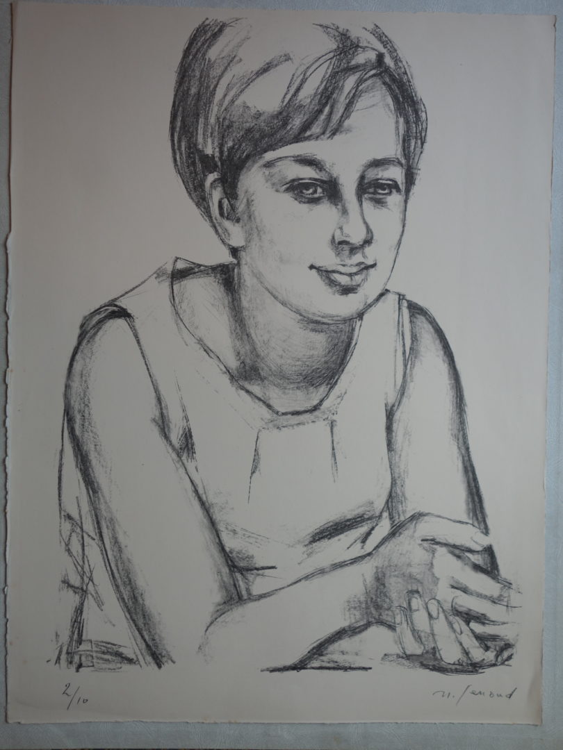 Portrait de jeune femme Artiste GENOUD Nanette Numéro d'inventaire FAA-GN-2775 Titre inconnu Dénomination Portrait de jeune femme Dimensions sur chassis 65x49 cm Technique / Support Lithographie Catégories Portrait Signature / Datation "n. Genoud" Remarques 1 épreuve noire, signée et justifiée "2/10" bg 1 épreuve noire, sans signature, de format plus grand Agrandir l'image Découvrez l'artiste GENOUD Nanette (CH) 9 avril 1907 / 30 novembre 1987 Fonds géré par la FAA Consulter sa fiche
