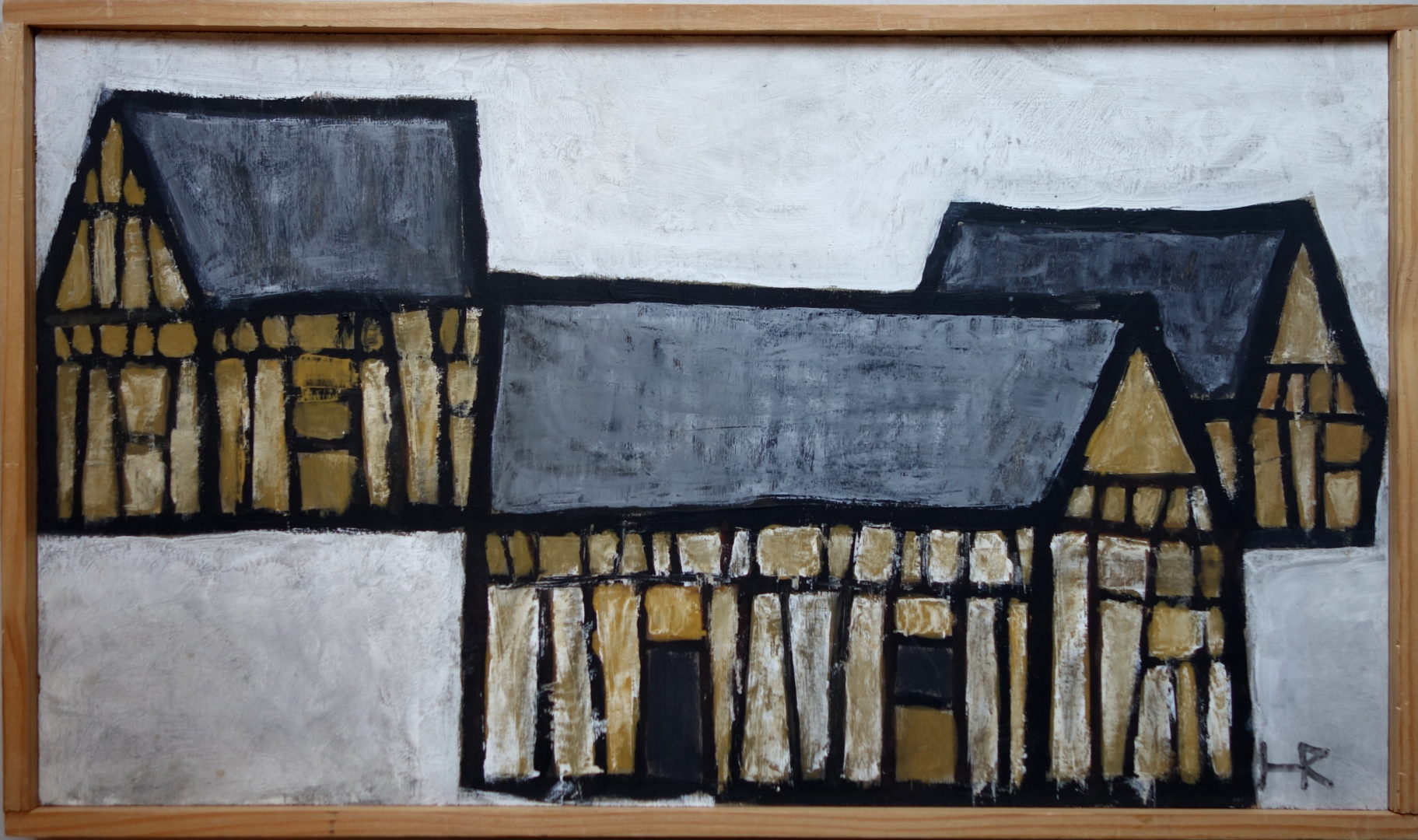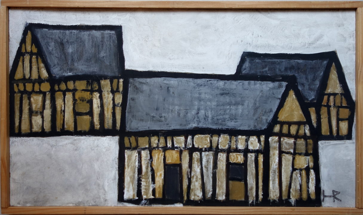 Maisons à colombage de Normandie Artiste HERITIER Robert Numéro d'inventaire FAA-HER-2785 Titre inconnu Dénomination Maisons à colombage de Normandie Année 1965 Dimensions sur chassis 30x54 cm Technique / Support Huile, A définir Catégories Architecture Signature / Datation "HR" bd "R. HERITIER 65" au dos Remarques Pas de titre Agrandir l'image Découvrez l'artiste HERITIER Robert 2 août 1926 / 8 juin 1971 Peinture, Gravure, Mosaïque, Céramique, Graphisme Fonds géré par la FAA Consulter sa fiche