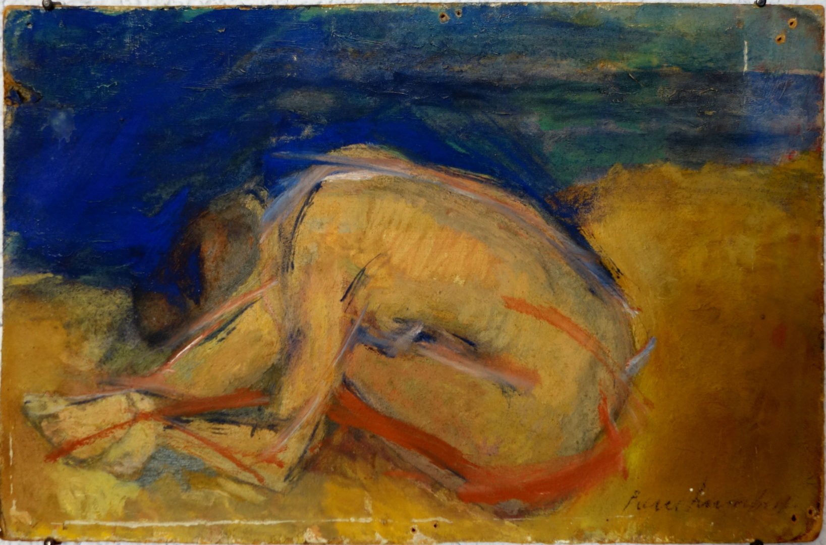 Nu replié sur soit Artiste PIERRE-HUMBERT Charles Numéro d'inventaire FAA-PHC-2837 Titre inconnu Dénomination Nu replié sur soit Disponibilité Œuvre inaliénable Dimensions sur chassis 20.5x34 cm Technique / Support Huile, Ardoise Catégories Nu Signature / Datation "PierreHumbert" bd Remarques - tampon d'atelier au dos Agrandir l'image Découvrez l'artiste PIERRE-HUMBERT Charles Thielle (NE) (CH) 10 septembre 1920 / 20 octobre 1992 Peinture, Lithographie, Mosaïque, Vitrail Fonds géré par la FAA Consulter sa fiche