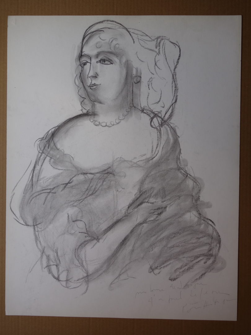 Portrait de femme à mi-corps Artiste PIERRE-HUMBERT Charles Numéro d'inventaire FAA-PHC-2909 Titre inconnu Dénomination Portrait de femme à mi-corps Disponibilité Œuvre inaliénable Année 1982 Dimensions sur chassis 65x50 cm Technique / Support Fusain Catégories Portrait Signature / Datation "PierreHumbert 82" bd Remarques Dédicace en bas à droite, en majeure partie illisible. On lit "... Levigne ..." Agrandir l'image Découvrez l'artiste PIERRE-HUMBERT Charles Thielle (NE) (CH) 10 septembre 1920 / 20 octobre 1992 Peinture, Lithographie, Mosaïque, Vitrail Fonds géré par la FAA Consulter sa fiche