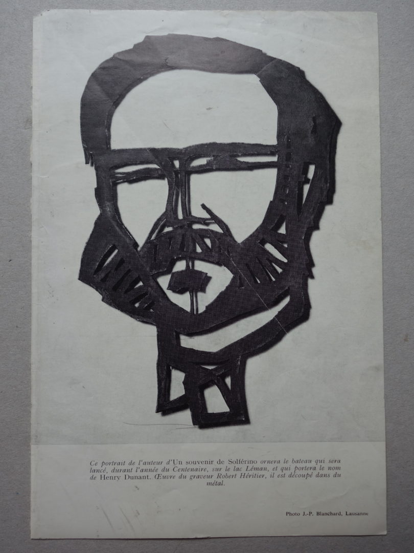Cette gravure correspond au portrait réalisé en relief métallique pour la proue (?) du bateau Henri Dunant (cf. photo, in: Brochure de l'Exposition internationale de la Croix-Rouge Genève, "100 ans au service de l'humanité", Palais des expositions, 15 août - 15 septembre 1963)