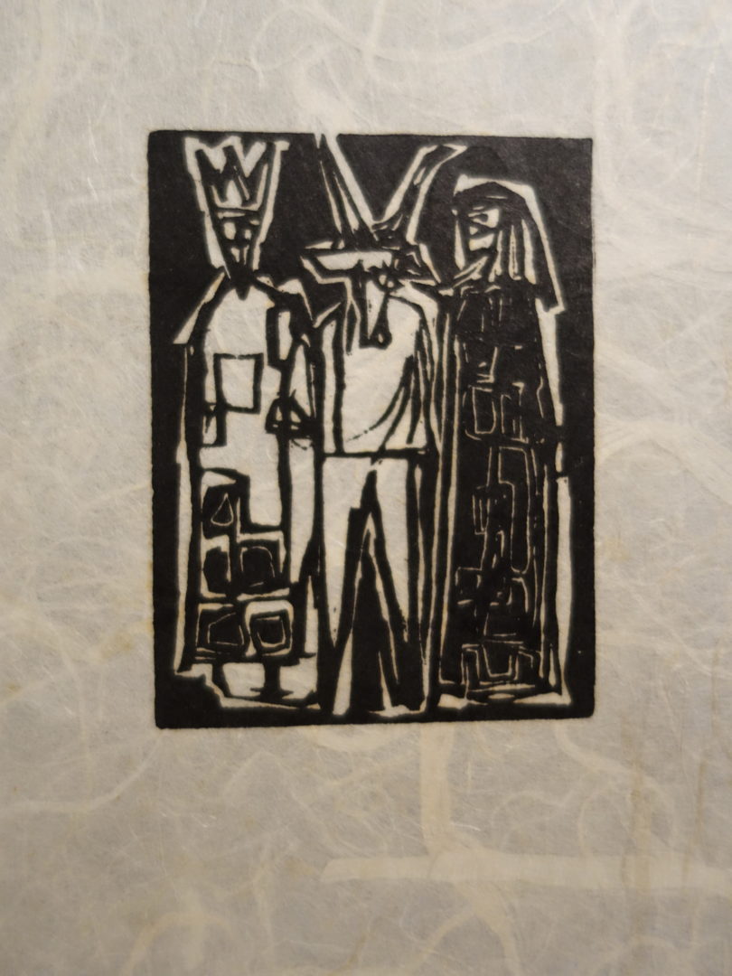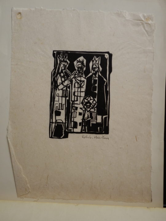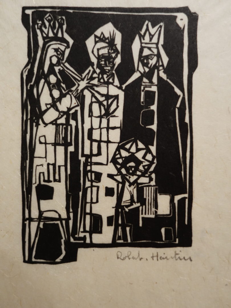 2 épreuves de la 1ère variante dont une signée: trois rois entourent l'Enfant Jésus, mais le personnage de gauche sonnent une trompette ce qui ne correspond pas à l'iconographie des Rois Mages