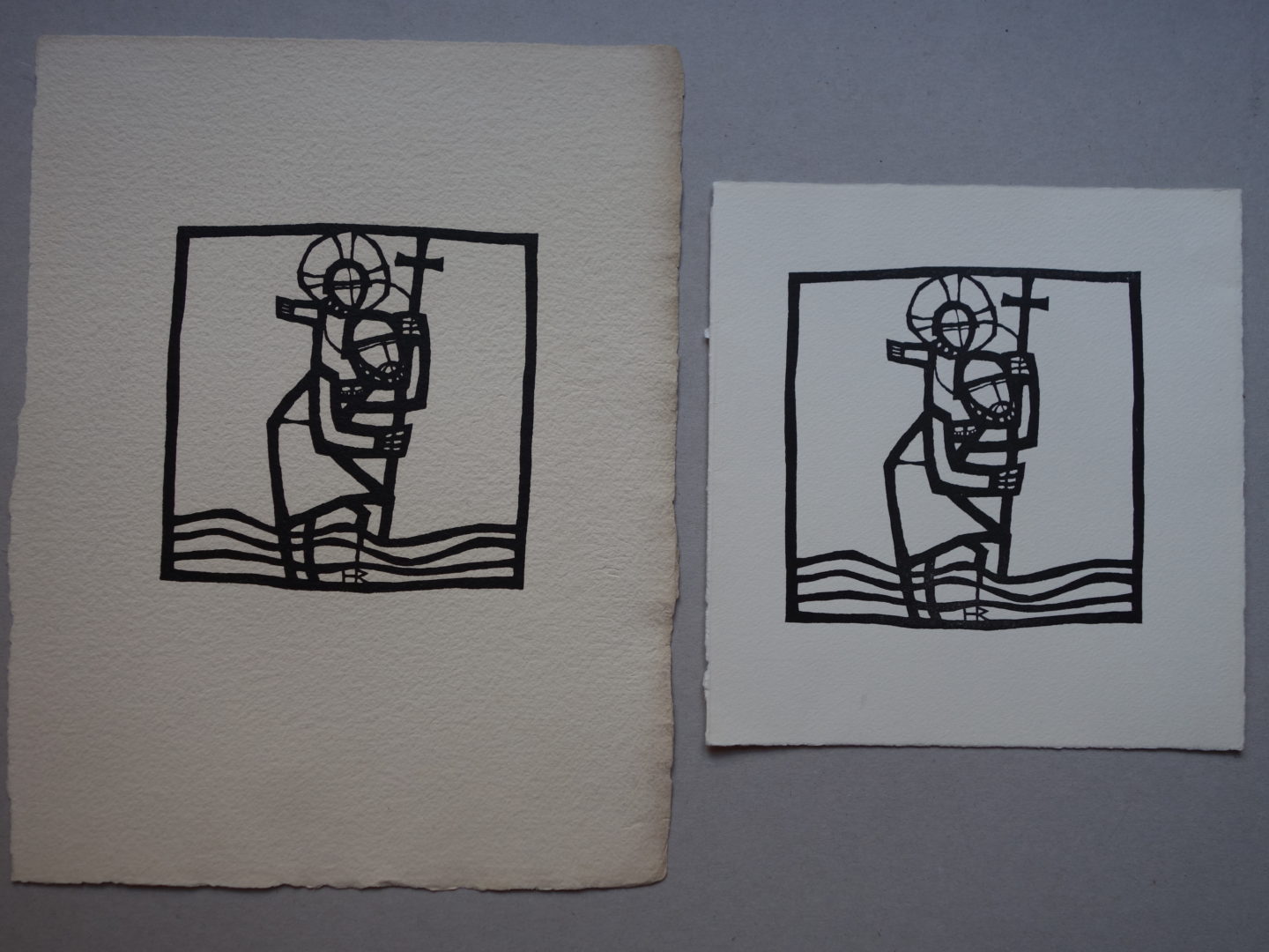 4 épreuves grandes, 4 plus petites et 1 encadrée: St-Christophe portant l'Enfant Jésus