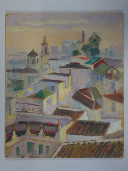 Vue de ville dans le sud Artiste CARRARD-KOHLER Marie-Louise Numéro d'inventaire FAA-CML-3082 Titre inconnu Dénomination Vue de ville dans le sud Dimensions sur chassis 27x22 cm Technique / Support Huile, Carton Catégories Paysage urbain Signature / Datation "M.L. Carrard" bd Agrandir l'image Découvrez l'artiste CARRARD-KOHLER Marie-Louise Châtelard Orbe (CH) 5 septembre 1901 / 1 décembre 1981 Fonds géré par la FAA Consulter sa fiche