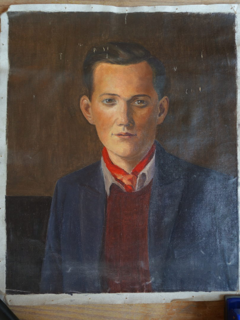 Portrait d'homme de face, en buste Artiste CARRARD-KOHLER Marie-Louise Numéro d'inventaire FAA-CML-3160 Titre inconnu Dénomination Portrait d'homme de face, en buste Dimensions sur chassis 48.5x40.5 cm Technique / Support Huile, Toile Catégories Portrait Remarques Toile déposée du châssis (marques de clous), en mauvais état (manques) Agrandir l'image Découvrez l'artiste CARRARD-KOHLER Marie-Louise Châtelard Orbe (CH) 5 septembre 1901 / 1 décembre 1981 Fonds géré par la FAA Consulter sa fiche