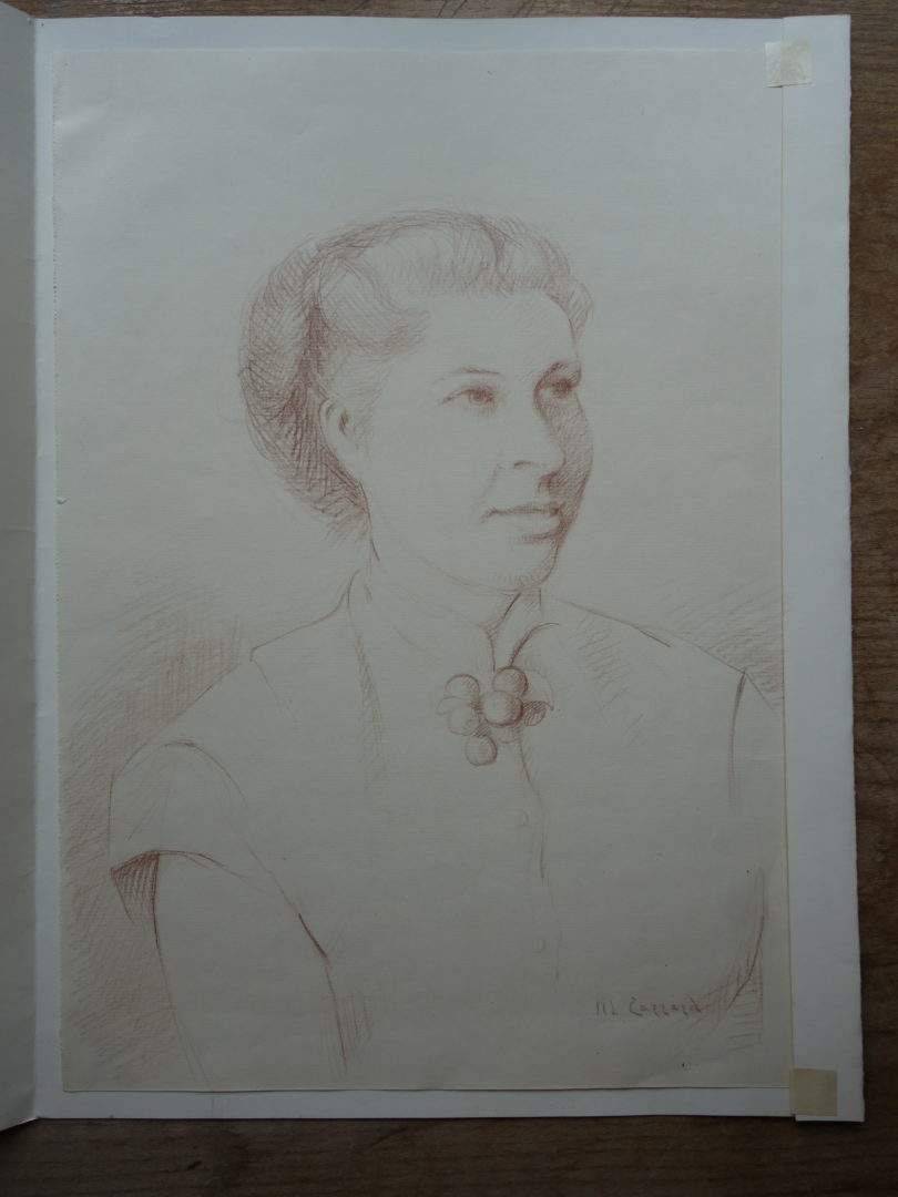 Portrait de femme trois quart, en buste Artiste CARRARD-KOHLER Marie-Louise Numéro d'inventaire FAA-CML-3167 Titre inconnu Dénomination Portrait de femme trois quart, en buste Dimensions sur chassis 40.5x28.5 cm Technique / Support Sanguine Catégories Portrait Signature / Datation "ML Carrard" bd Agrandir l'image Découvrez l'artiste CARRARD-KOHLER Marie-Louise Châtelard Orbe (CH) 5 septembre 1901 / 1 décembre 1981 Fonds géré par la FAA Consulter sa fiche Images complémentaires CARRARD-KOHLER Marie-Louise – Portrait de femme trois quart, en buste – Sanguine, 40.5x28.5 cm – Portrait