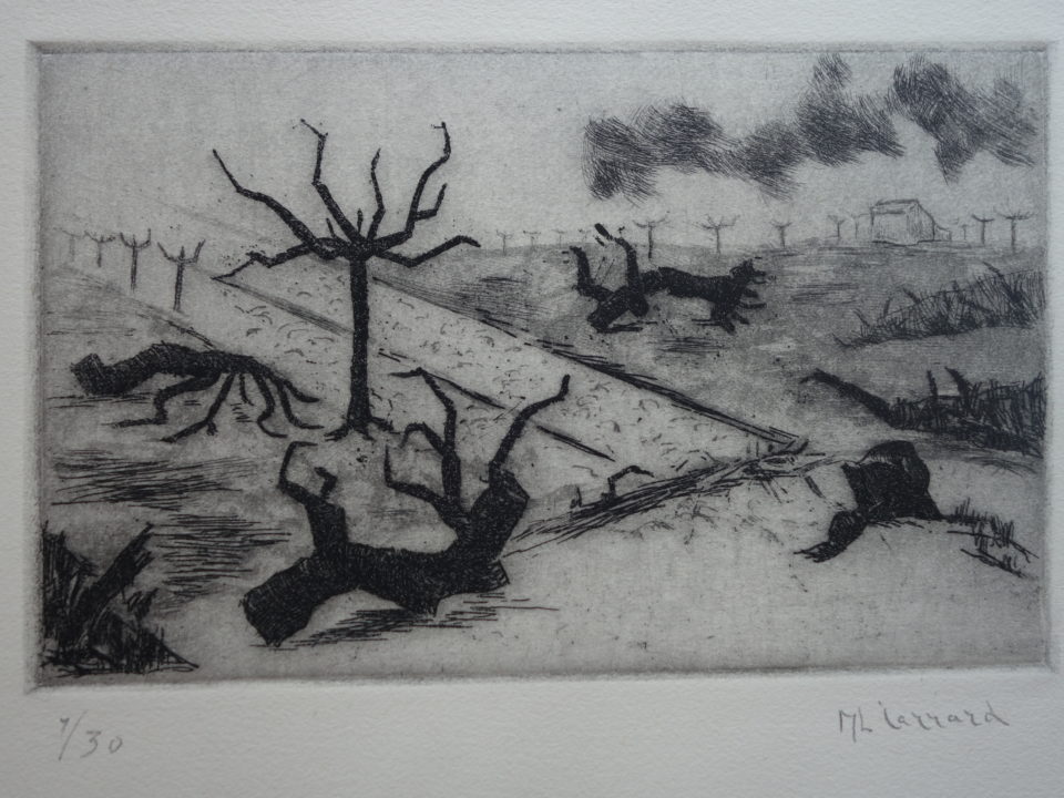 Paysage en désolation Artiste CARRARD-KOHLER Marie-Louise Numéro d'inventaire FAA-CML-3254 Titre inconnu Dénomination Paysage en désolation Dimensions sur chassis 24.5x37 cm Technique / Support Eau forte, Aquatinte Catégories Paysage Signature / Datation "ML Carrard" bd Remarques - 4 épreuves justifiées 1/30 à 4/30 Agrandir l'image Découvrez l'artiste CARRARD-KOHLER Marie-Louise Châtelard Orbe (CH) 5 septembre 1901 / 1 décembre 1981 Fonds géré par la FAA Consulter sa fiche