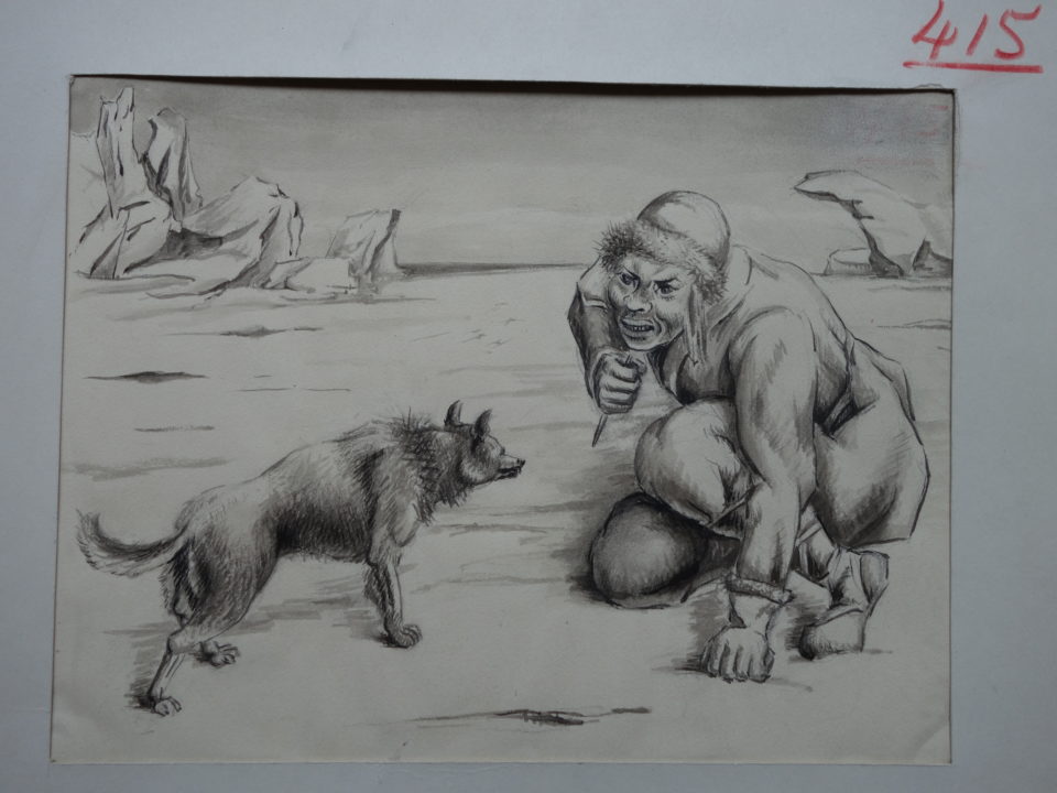 - 1 dessin du loup sur papier brun