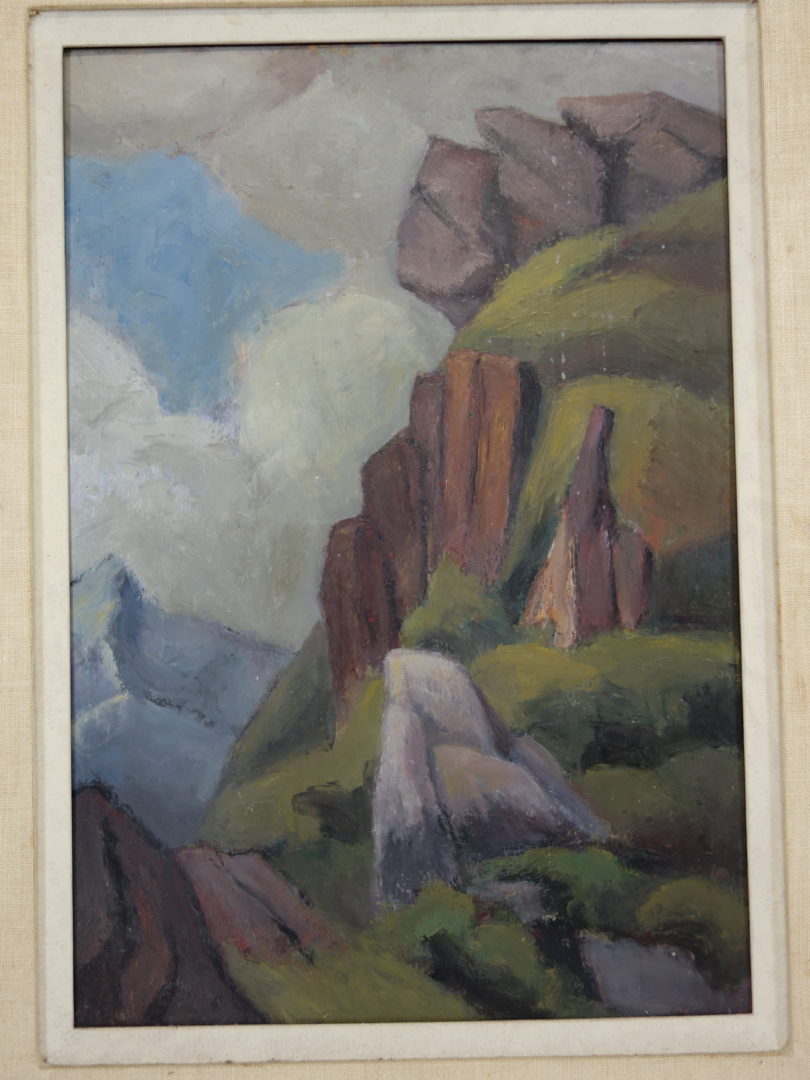 Paysage de montagne Artiste CARRARD-KOHLER Marie-Louise Numéro d'inventaire FAA-CML-3496 Titre inconnu Dénomination Paysage de montagne Dimensions sur chassis 54.5x38 cm Technique / Support Huile, Ardoise Catégories Paysage de montagne Remarques - à l'arrière du cadre, étiquette correspondant à une autre toile, voir photo Agrandir l'image Découvrez l'artiste CARRARD-KOHLER Marie-Louise Châtelard Orbe (CH) 5 septembre 1901 / 1 décembre 1981 Fonds géré par la FAA Consulter sa fiche Images complémentaires CARRARD-KOHLER Marie-Louise – Paysage de montagne – Huile, Ardoise, 54.5x38 cm – Paysage de montagne