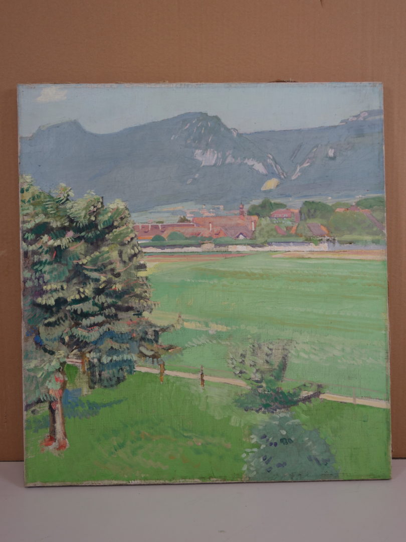 Paysage au pied du Jura Artiste ROTH Rolf (Lucifer) Numéro d'inventaire FAA-RR-3564 Titre inconnu Dénomination Paysage au pied du Jura Dimensions sur chassis 60.5x55 cm Technique / Support Huile, Toile Catégories Paysage Signature / Datation "Roth" au dos sur le chassis Remarques - il s'agit probablement de la région soleuroise Agrandir l'image Découvrez l'artiste ROTH Rolf (Lucifer) Soleure (CH) 14 février 1888 / 12 avril 1985 Aquarelle, Dessin, Caricature Fonds géré par la FAA Consulter sa fiche