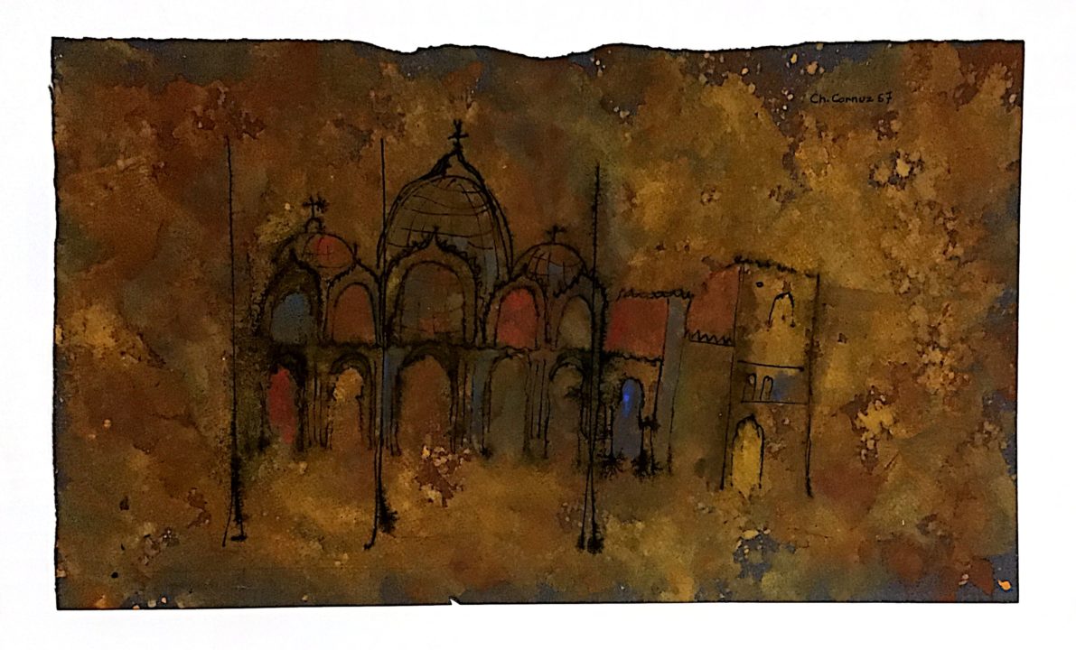 - l’oeuvre ainsi que les numéros d’inventaires suivants se trouvaient dans un cartable avec la mention suivante : « « Venise » 1957-1959 Gouache ».