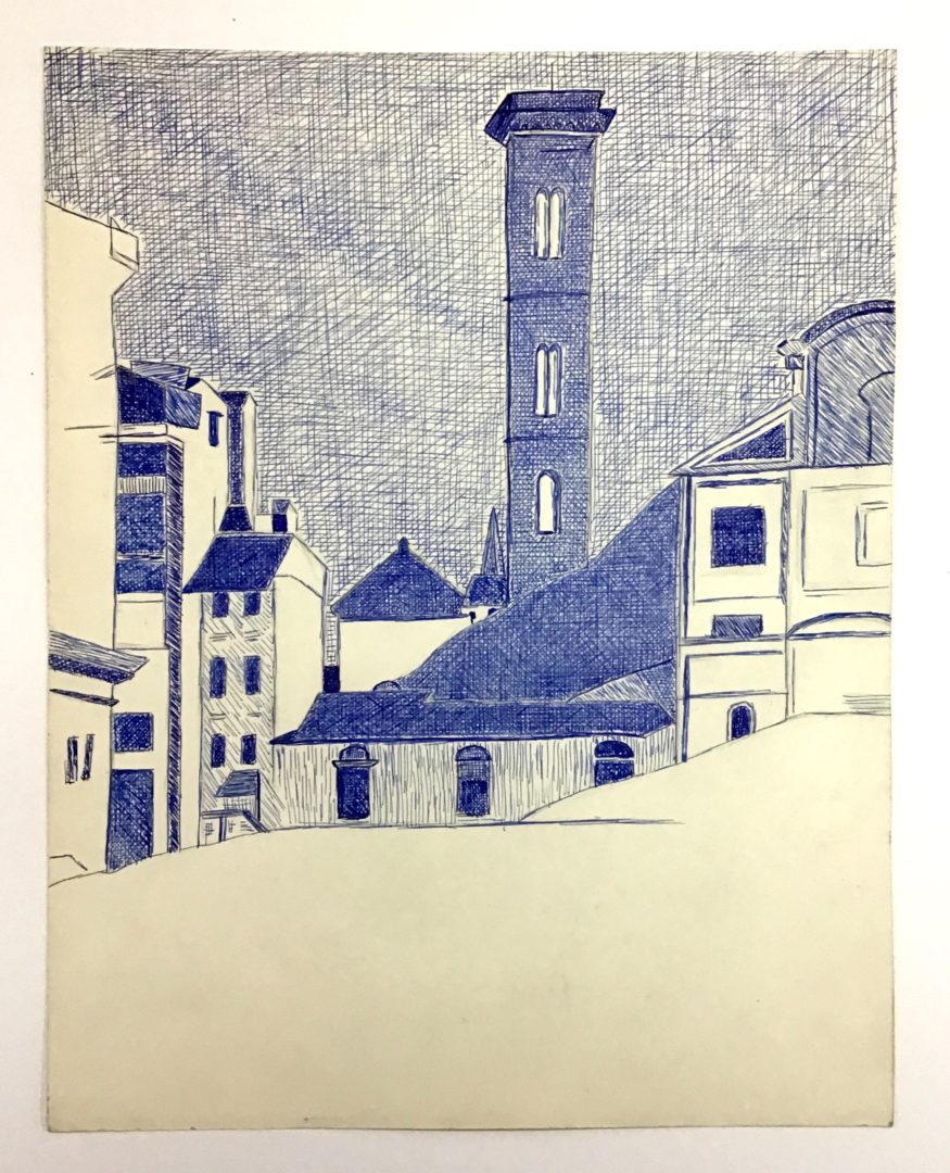 Eglise Ognissanti Artiste CORNUZ-MOLLES Christiane Numéro d'inventaire FAA-CC-3910 Titre inconnu Dénomination Eglise Ognissanti Période Années 1950 Technique / Support Stylo, Papier Catégories Paysage urbain Remarques - l’oeuvre se trouvait dans un cartable avec une mention, voir n° d’inventaire 3914. Agrandir l'image Découvrez l'artiste CORNUZ-MOLLES Christiane (CH) 19 janvier 1939 / 11 juillet 2005 Fonds géré par la FAA Consulter sa fiche