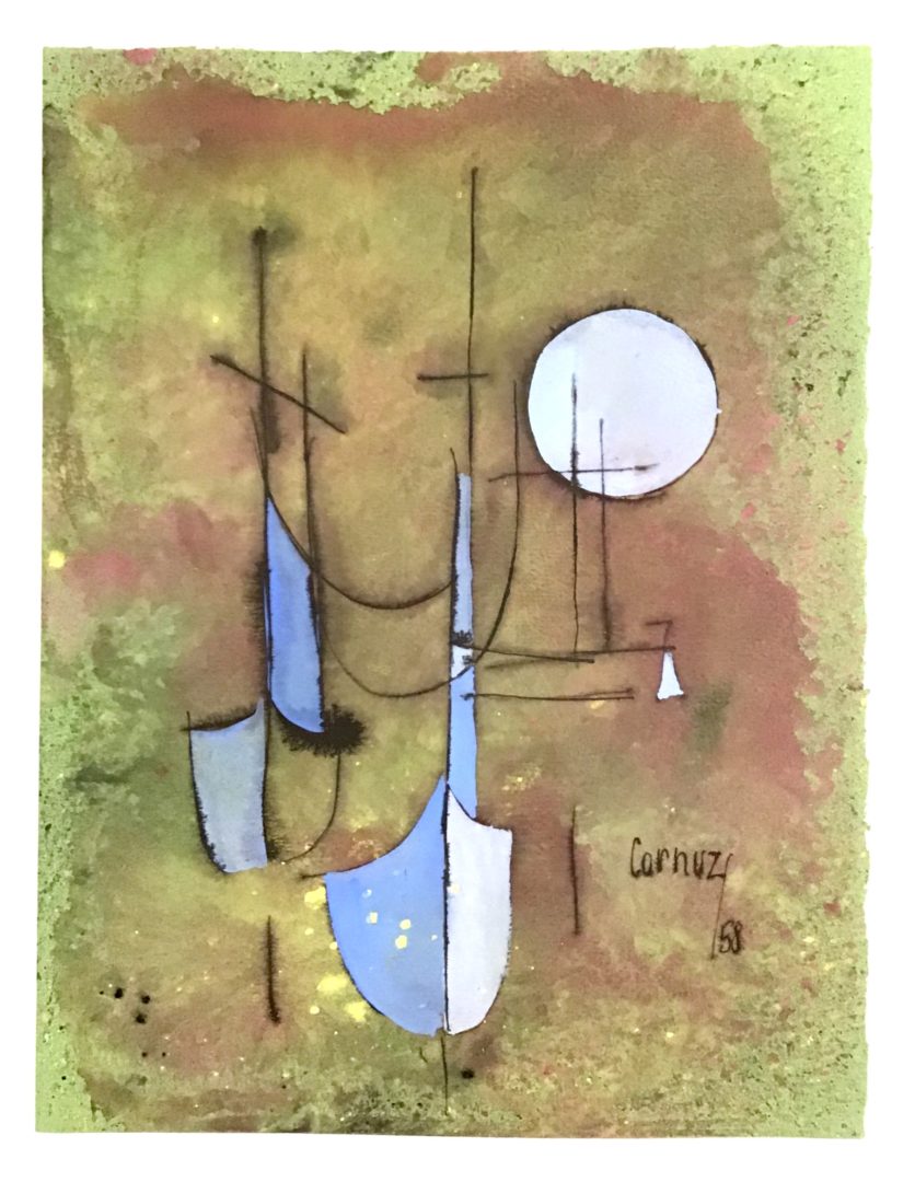 Composition avec gondoles Artiste CORNUZ-MOLLES Christiane Numéro d'inventaire FAA-CC-3911 Titre inconnu Dénomination Composition avec gondoles Année 1958 Technique / Support Gouache, Encre, Papier Catégories Paysage Signature / Datation « Cornuz / 58 » bd Remarques - l’oeuvre se trouvait dans un cartable avec une mention, voir n° d’inventaire 3914. Agrandir l'image Découvrez l'artiste CORNUZ-MOLLES Christiane (CH) 19 janvier 1939 / 11 juillet 2005 Fonds géré par la FAA Consulter sa fiche