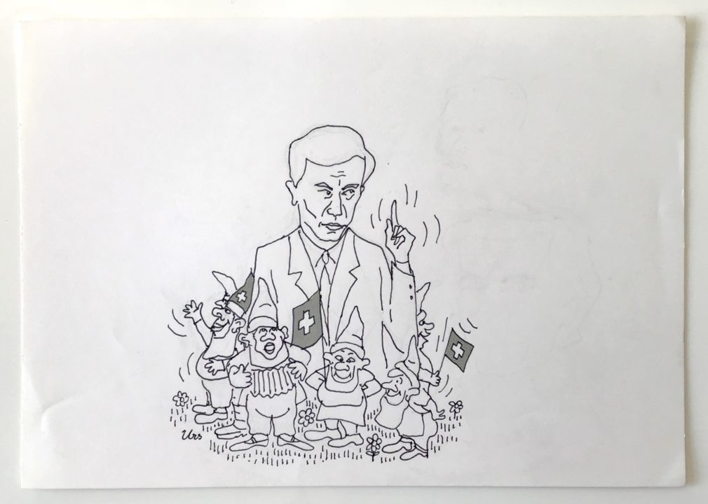 Les nains suisses Artiste URS (Frédéric Studer) Numéro d'inventaire FAA-URS-4175 Titre inconnu Dénomination Les nains suisses Technique / Support Encre, Trame, Papier Catégories Scène de genre Signature / Datation « Urs » bg Remarques - inscription au dos « TV hebdo » Agrandir l'image Découvrez l'artiste URS (Frédéric Studer) (CH) 26 mai 1926 / 22 octobre 2005 Fonds géré par la FAA Consulter sa fiche