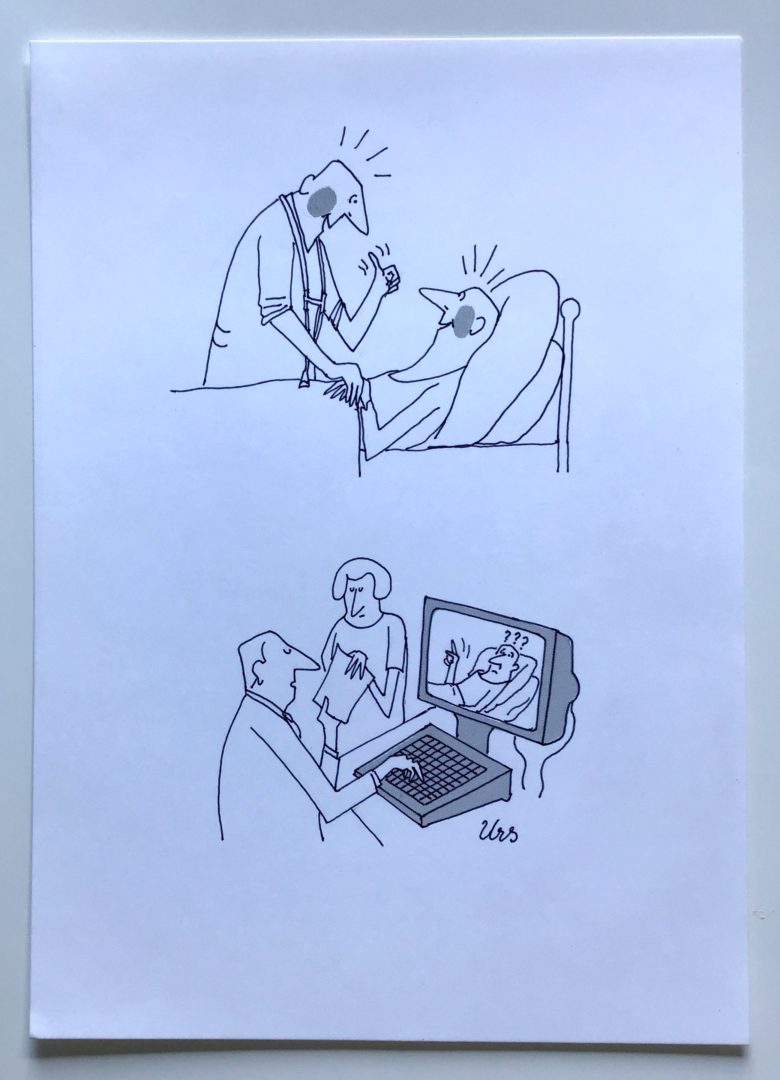 La télé-médecine Artiste URS (Frédéric Studer) Numéro d'inventaire FAA-URS-4325 Titre inconnu Dénomination La télé-médecine Technique / Support Encre, Trame, Papier Catégories Scène de genre Signature / Datation « Urs » bd Remarques - dessin pour « Construire » mais pas paru, selon indication sur une copie Agrandir l'image Découvrez l'artiste URS (Frédéric Studer) (CH) 26 mai 1926 / 22 octobre 2005 Fonds géré par la FAA Consulter sa fiche