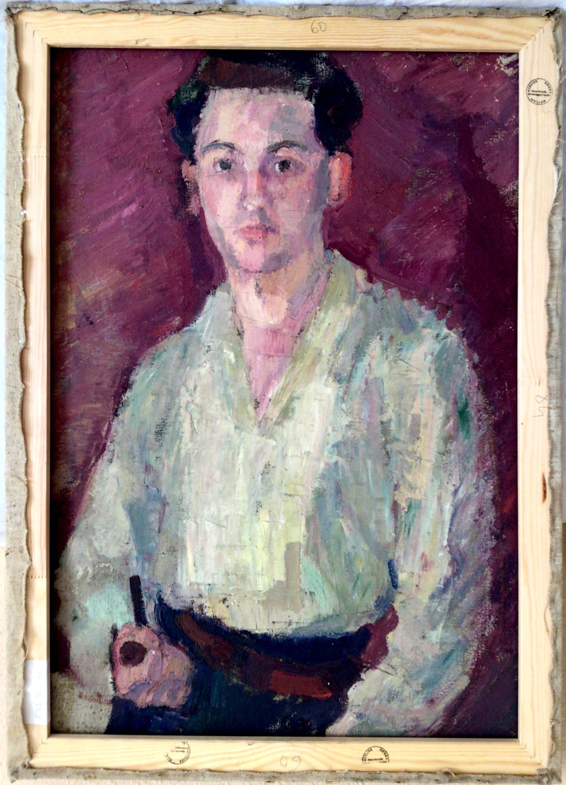- La toile constitue la réalisation d’un beau portrait d’homme à la pipe au dos et à l’envers (cf photo)
