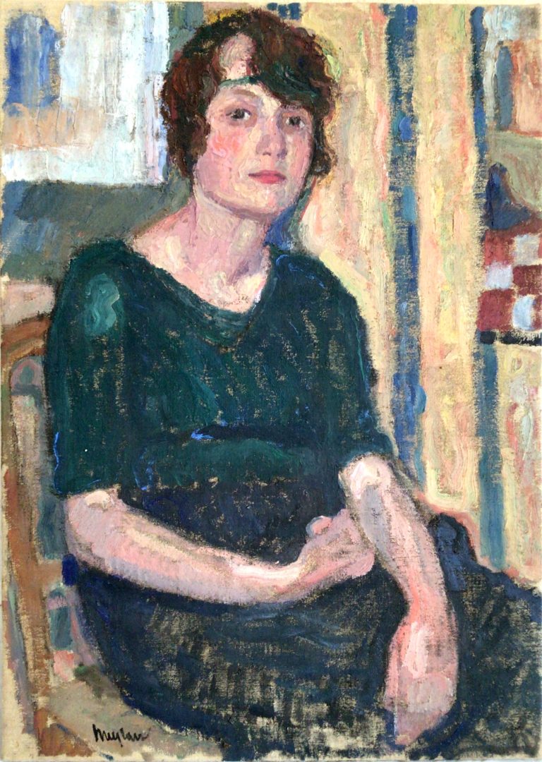 - Femme assise à la robe verte