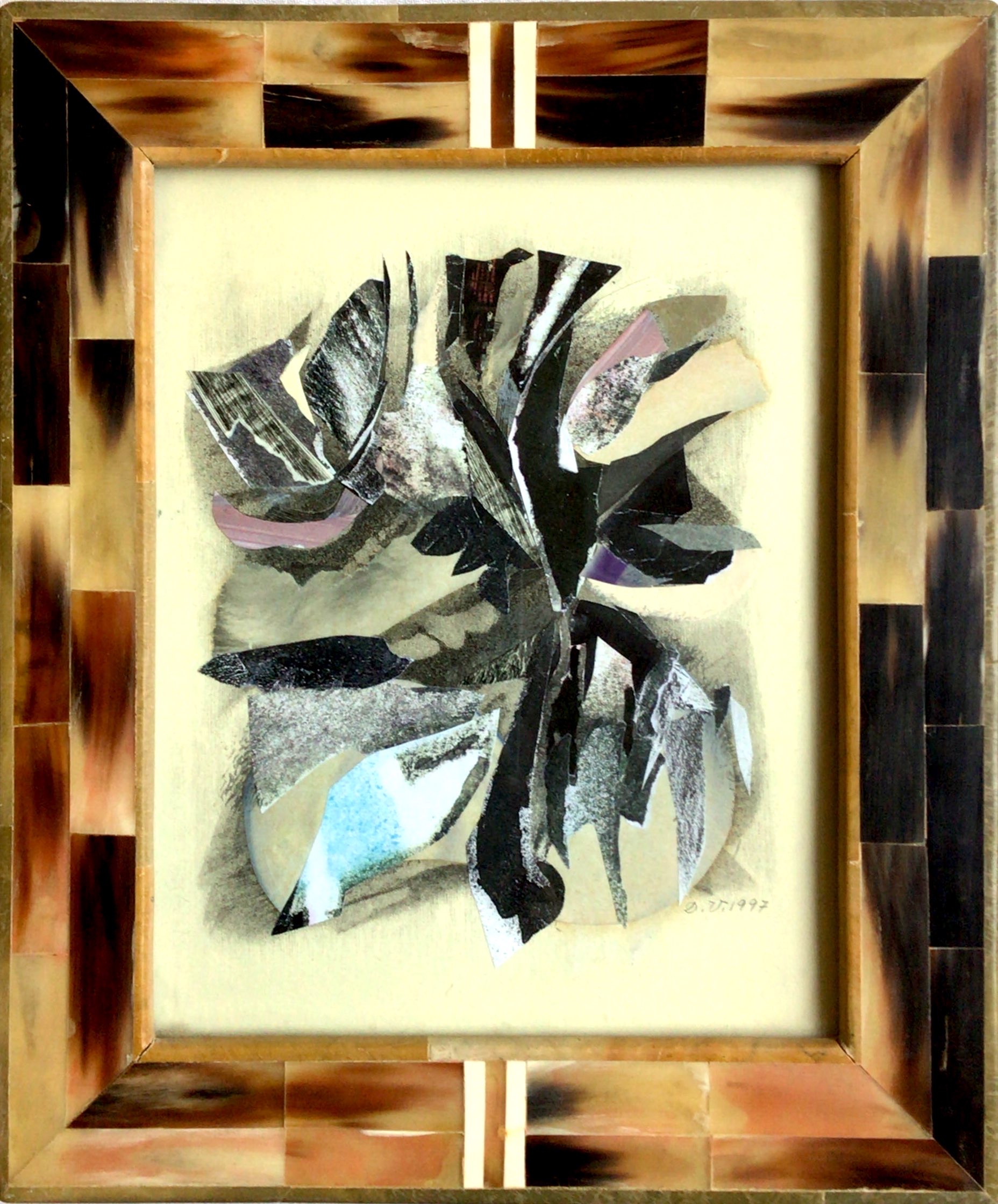 - Il est possible que le cadre, personnalisé, ne soit pas de l’artiste : une carte du 21 décembre 1997 signée « Malou » est glissée entre l’oeuvre et le cadre