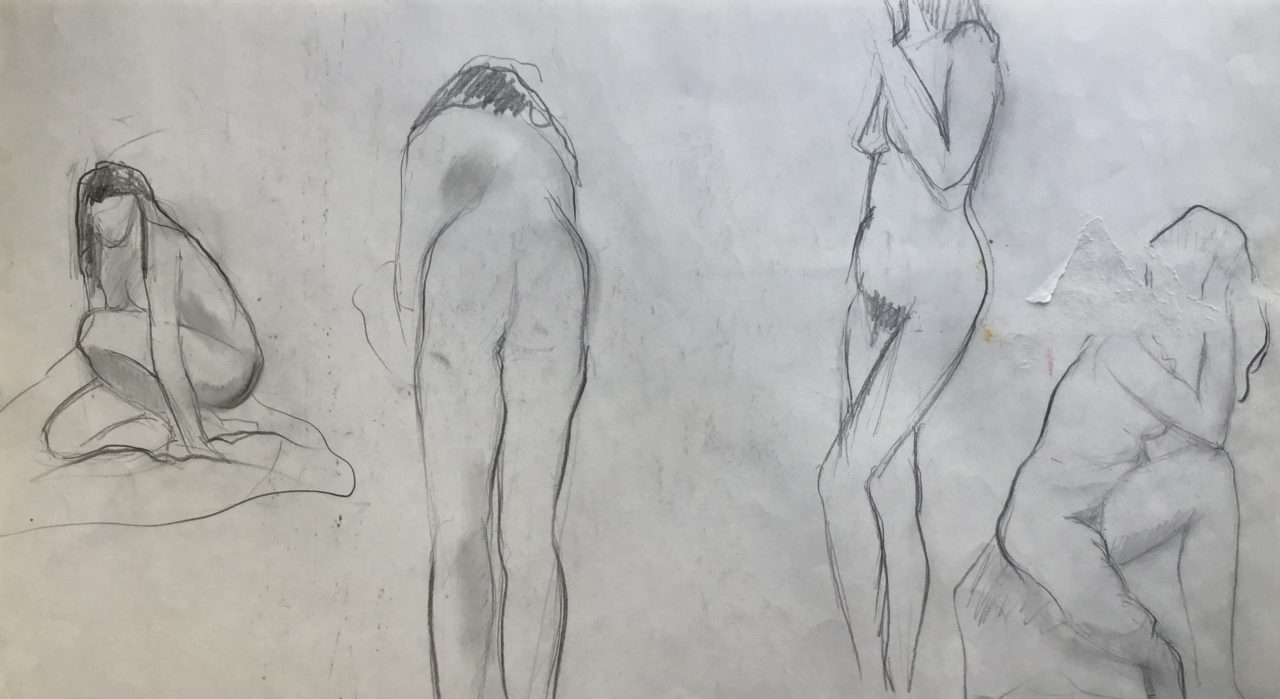- - Un second dessin (59 x 33 cm) au verso (cf photo) représente une étude de nu, non-signée et non datée. Le papier est déchiré md, qui endommage l’une des figure