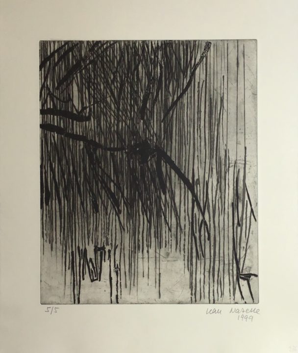 Gravure n°236 Artiste NAZELLE Jean (Jean Hürlimann) Numéro d'inventaire FAA-NJ-5497 Titre inconnu Dénomination Gravure n°236 Année 1999 Technique / Support Papier, Pointe sèche, Aquatinte Catégories Non figuratif Signature / Datation « Jean Nazelle / 1999 » bd Remarques - Signature, date et justification « 5/5 » au recto. Agrandir l'image Découvrez l'artiste NAZELLE Jean (Jean Hürlimann) (CH) 24 décembre 1929 / 1 juillet 2018 Gravure, Aquarelle Fonds géré par la FAA Consulter sa fiche