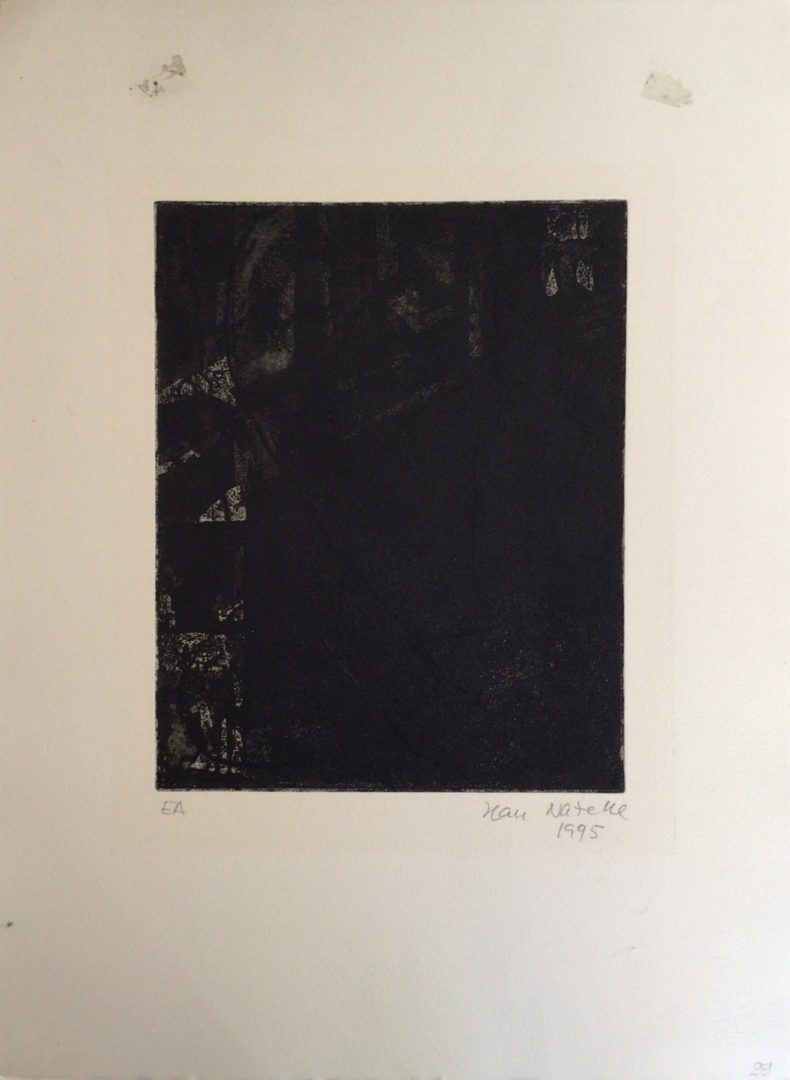 - L’épreuve d’artiste mesure 54x40cm (la cuve reste la même) et le papier est marqué par des marques de colle.