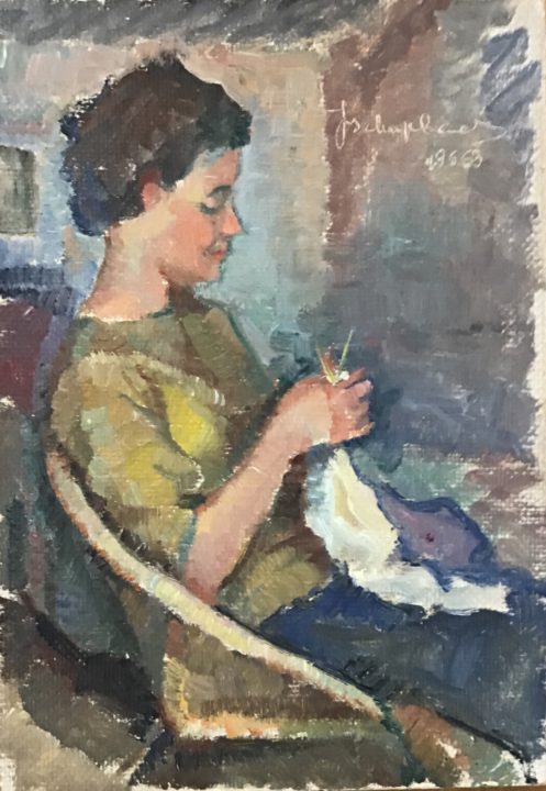 Femme assisse au tricot Artiste SCHÜPBACH Jean-Pierre Numéro d'inventaire FAA-SJP-5543 Titre inconnu Dénomination Femme assisse au tricot Année 1963 Technique / Support Huile, Bois, Panneau Catégories Portrait Signature / Datation JPSchupbach, 19.6.63, hd Remarques Ne figure pas au catalogue raisonné de Philippe Rey. Agrandir l'image Découvrez l'artiste SCHÜPBACH Jean-Pierre (CH) 8 mars 1906 / 22 décembre 1992 Peinture, Dessin, Sculpture Fonds géré par la FAA Consulter sa fiche