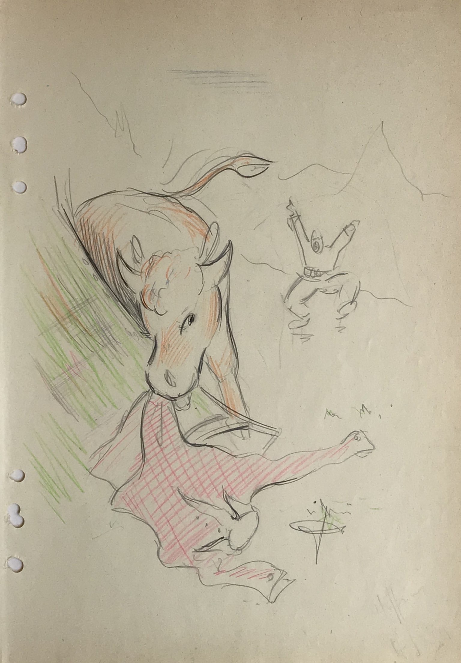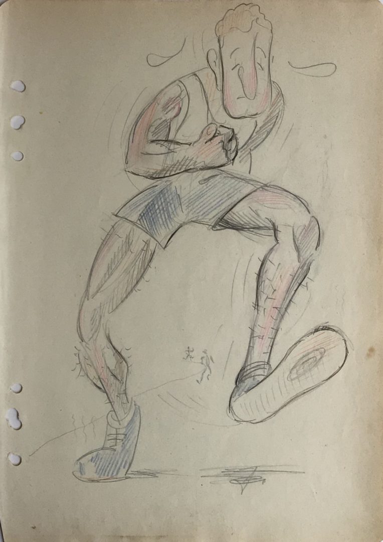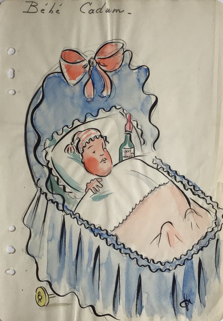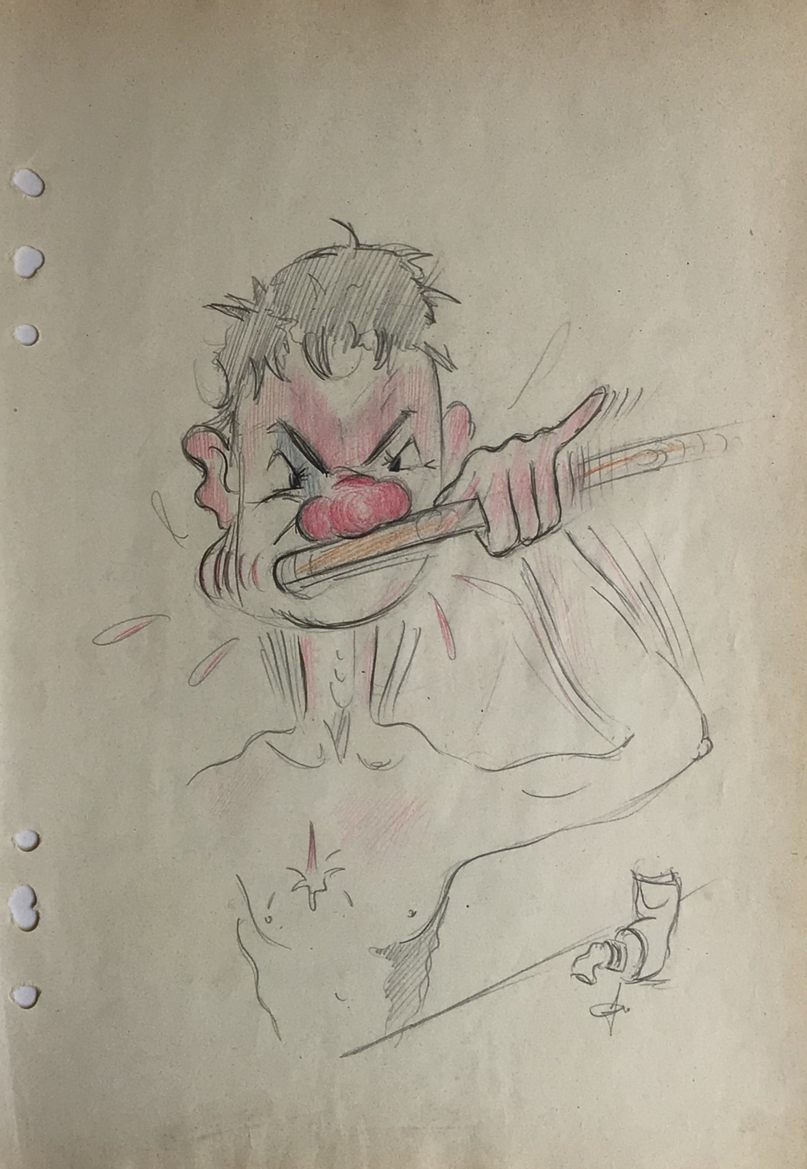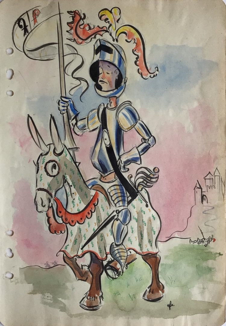 - Feuillet de divers dessins datant de 1945 à 1947 caricaturant la guerre.