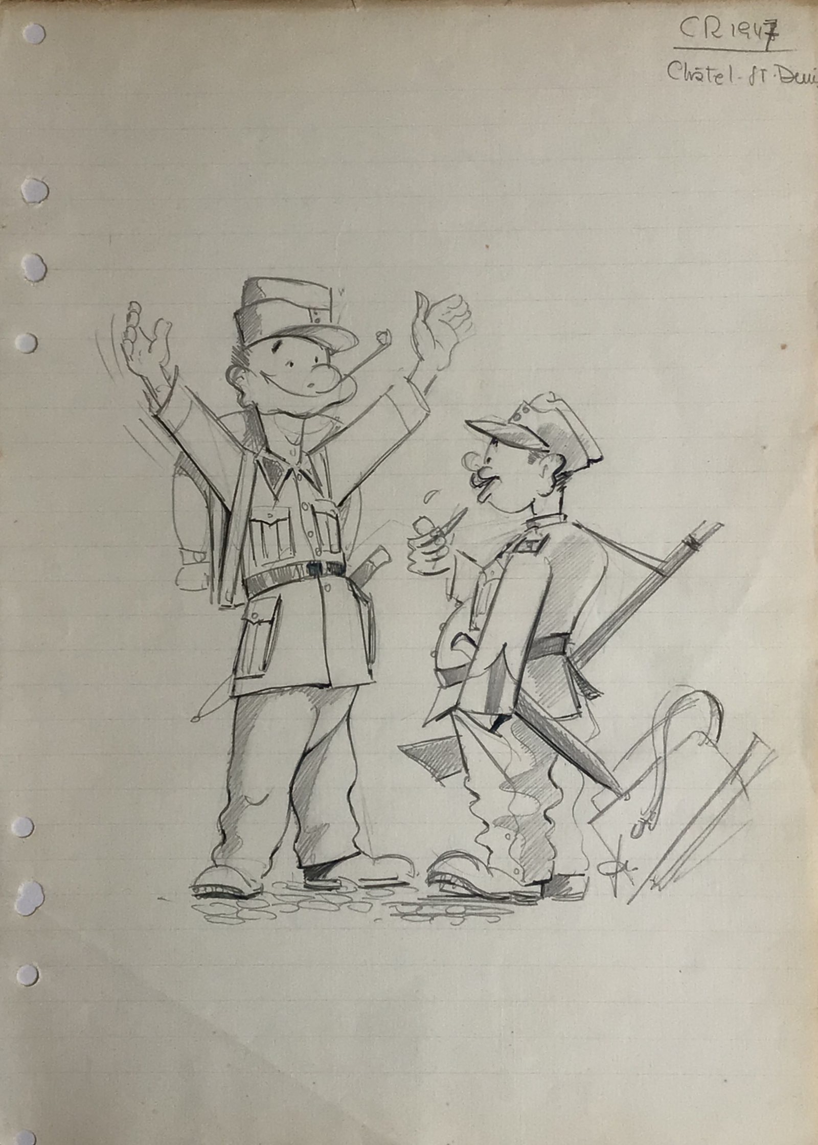 - Un dessin intitulé « Conversation radio!!! » accompagné à son verso des « Manoeuvres de C.A. - Septembre 1994 ».