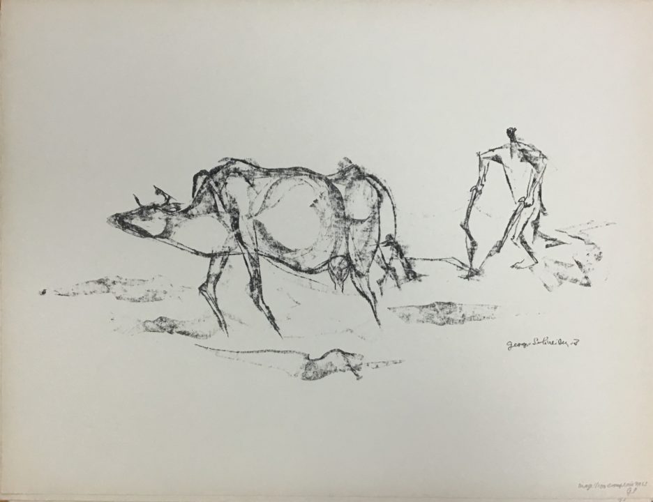 Laboureur Artiste SCHNEIDER Georges Numéro d'inventaire FAA-SCG-5597 Titre inconnu Dénomination Laboureur Année 1958 Technique / Support Papier, Lithographie Catégories Scène de genre Signature / Datation GS Remarques Dimensions des plus grandes Série de trois lithographie, signées et décrites (tirage 1/100, N° 65, 66 et 83) Un exemplaire différent non signé Agrandir l'image Découvrez l'artiste SCHNEIDER Georges (CH, F) 10 mai 1919 / 17 mai 2010 Fonds géré par la FAA Consulter sa fiche