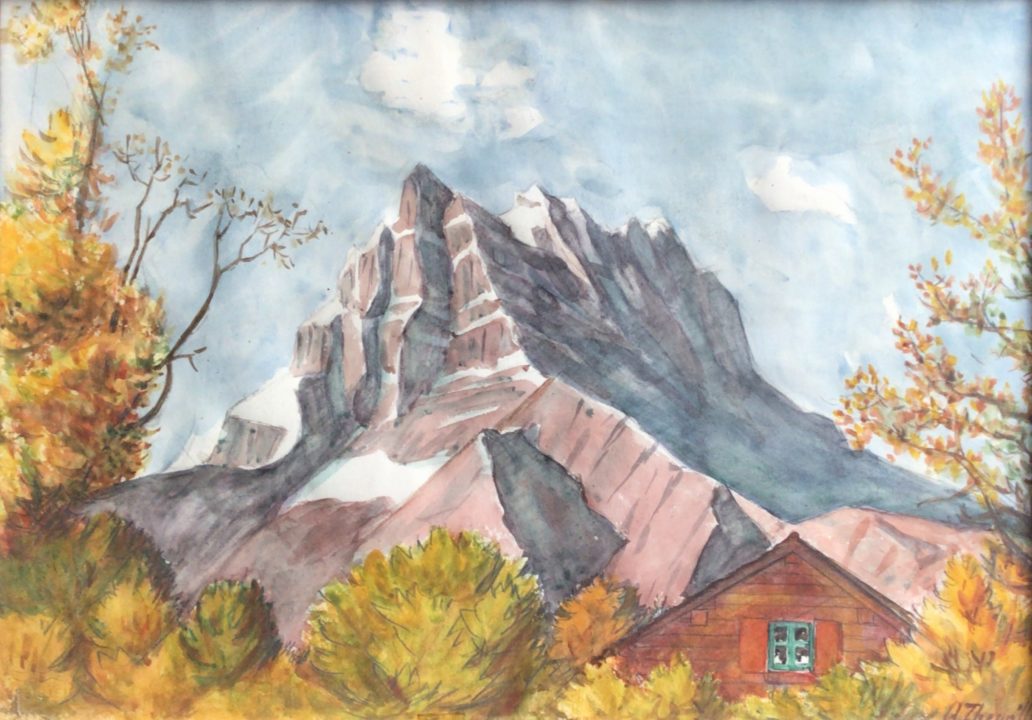 - Montagne enneigée et chalet en automne