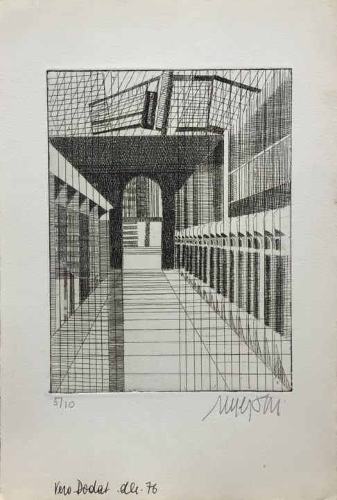 - 6 gravures eau-forte (16x12cm et 25x17cm), dont 5 comportent une signature, une date, une justification « 5/10 », de « 7/10 » à « 10/10 » et le titre « Vero Dodat »