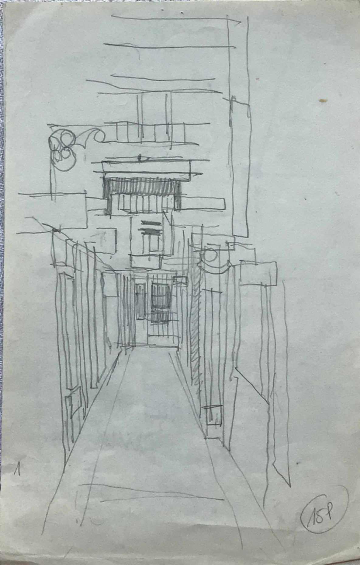- 3 croquis (21,5x14cm) datés du 17 octobre 1976, titré « Passage du Grand Cerf » ou « P.G.C. » et numérotés de 1 à 3 au verso.