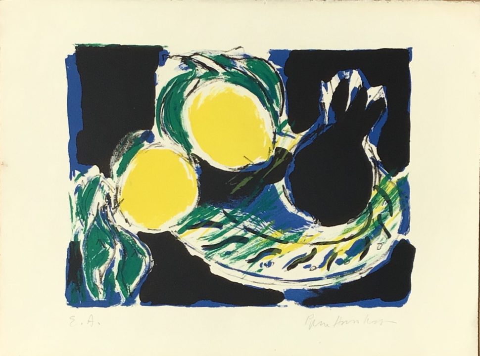 Nature aux citrons Artiste PIERRE-HUMBERT Charles Numéro d'inventaire FAA-PHC-6323 Titre inconnu Dénomination Nature aux citrons Disponibilité Œuvre inaliénable Année 1980 Période Années 1980 Technique / Support Lithographie, Papier Catégories Nature morte Signature / Datation « PierreHumbert » bd Remarques - les 4 épreuves justifiées E.A bg - Une épreuve avec inscription « à Anne » bd - 4 épreuves dont une inaliénable Agrandir l'image Découvrez l'artiste PIERRE-HUMBERT Charles Thielle (NE) (CH) 10 septembre 1920 / 20 octobre 1992 Peinture, Lithographie, Mosaïque, Vitrail Fonds géré par la FAA Consulter sa fiche