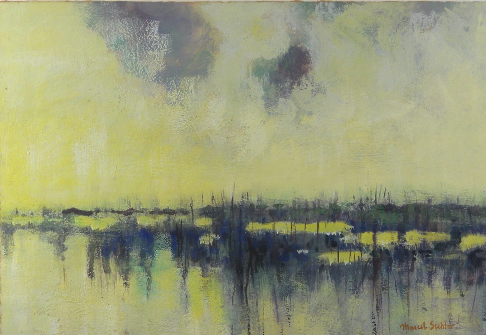 Paysage en Camargue (étang, lac ?) Artiste STEBLER Marcel Numéro d'inventaire FAA-SM-851 Titre inconnu Dénomination Paysage en Camargue (étang, lac ?) Disponibilité Œuvre inaliénable Période Années 1960 Dimensions sur chassis 33x47 cm Technique / Support Cire, Papier Catégories Paysage Signature / Datation "Marcel Stebler" bd Remarques 1962-64 (datation au dos de la photo du répertoire des oeuvres remises à la FAA) Agrandir l'image Découvrez l'artiste STEBLER Marcel Montreux (CH) 6 septembre 1906 / 29 mars 1966 Peinture à l'huile, Peinture à la cire, Mosaïque Fonds géré par la FAA Consulter sa fiche