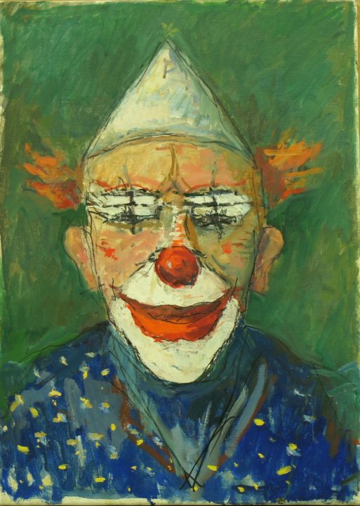 Autoportrait en clown Artiste ENZ Albert Numéro d'inventaire FAA-EA-1373 Titre inconnu Dénomination Autoportrait en clown Disponibilité Œuvre inaliénable Période Années 1980 Dimensions sur chassis 46x33 cm Technique / Support Huile, Toile Catégories Portrait Signature / Datation sans Littérature - "A. Enz", Claude Garino, 1983 Agrandir l'image Découvrez l'artiste ENZ Albert Winterthur (CH, F) 25 septembre 1909 / 11 mai 1982 Fonds géré par la FAA Consulter sa fiche