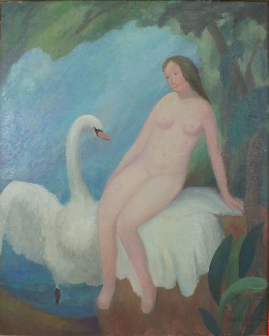 Jeune fille sur un cygne Artiste DISERENS Violette Numéro d'inventaire FAA-DV-1509 Titre inconnu Dénomination Jeune fille sur un cygne Année 1926 Dimensions sur chassis 100x81 cm Technique / Support Huile, Toile Catégories Mythologie Signature / Datation "Violette Diserens" /"1926" bd Remarques - études, voir AA-DV1860 Agrandir l'image Découvrez l'artiste DISERENS Violette Lausanne (CH) 2 juin 1888 / 27 avril 1965 Peinture, Gravure Fonds géré par la FAA Consulter sa fiche Images complémentaires DISERENS Violette – Jeune fille sur un cygne 1926 – Huile, Toile, 100x81 cm – Mythologie