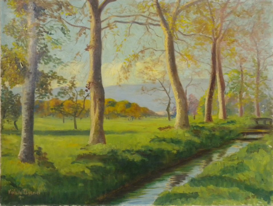 Paysage avec ruisseau Artiste DISERENS Violette Numéro d'inventaire FAA-DV-1577 Titre inconnu Dénomination Paysage avec ruisseau Année 1911 Dimensions sur chassis 54x73 cm Technique / Support Huile, Toile Catégories Paysage Signature / Datation Violette Diserens /1911 (Bg) Remarques -Troué hg - Manquements couche picturale m, md Agrandir l'image Découvrez l'artiste DISERENS Violette Lausanne (CH) 2 juin 1888 / 27 avril 1965 Peinture, Gravure Fonds géré par la FAA Consulter sa fiche Images complémentaires DISERENS Violette – Paysage avec ruisseau 1911 – Huile, Toile, 54x73 cm – Paysage