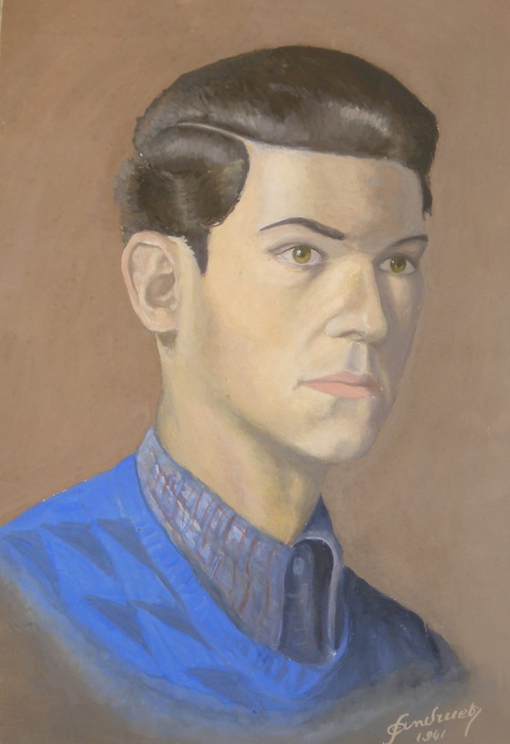 autoportrait Artiste ANDRUET Francis Numéro d'inventaire FAA-AF-222 Titre inconnu Dénomination autoportrait Disponibilité Œuvre inaliénable Année 1941 Dimensions sur chassis 42.5x29.5 cm Technique / Support Gouache Catégories Portrait Signature / Datation "Andtruet / 1941" bd Agrandir l'image Découvrez l'artiste ANDRUET Francis Genève (CH) 28 mai 1923 / 26 décembre 2018 Peinture à l'huile, Aquarelle, Dessin, Xylographie Fonds géré par la FAA Consulter sa fiche