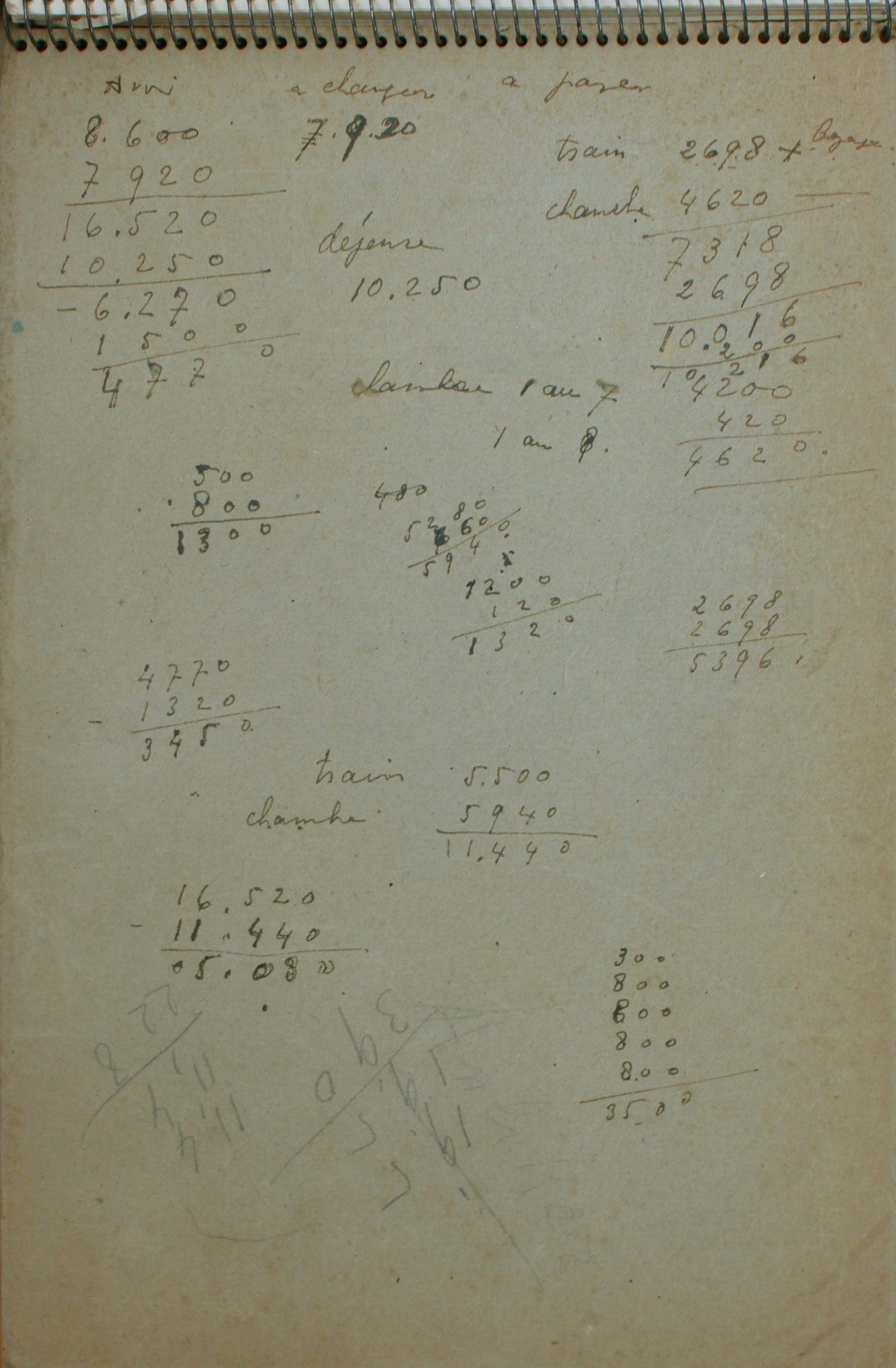 Carnet à spirale (sans couverture, mais commencé par la fin) Artiste DISERENS Violette Numéro d'inventaire FAA-DV-1676 Titre inconnu Dénomination Carnet à spirale (sans couverture, mais commencé par la fin) Dimensions sur chassis 27x18 cm Technique / Support Catégories Carnet Signature / Datation sans Remarques - photo AA-DV1683dos.jpg, ce qui serait logiquement la première page du carnet Agrandir l'image Découvrez l'artiste DISERENS Violette Lausanne (CH) 2 juin 1888 / 27 avril 1965 Peinture, Gravure Fonds géré par la FAA Consulter sa fiche Images complémentaires DISERENS Violette – Carnet à spirale (sans couverture, mais commencé par la fin) , 27x18 cm – Carnet DISERENS Violette – Carnet à spirale (sans couverture, mais commencé par la fin) , 27x18 cm – Carnet DISERENS Violette – Carnet à spirale (sans couverture, mais commencé par la fin) , 27x18 cm – Carnet DISERENS Violette – Carnet à spirale (sans couverture, mais commencé par la fin) , 27x18 cm – Carnet DISERENS Violette – Carnet à spirale (sans couverture, mais commencé par la fin) , 27x18 cm – Carnet DISERENS Violette – Carnet à spirale (sans couverture, mais commencé par la fin) , 27x18 cm – Carnet DISERENS Violette – Carnet à spirale (sans couverture, mais commencé par la fin) , 27x18 cm – Carnet DISERENS Violette – Carnet à spirale (sans couverture, mais commencé par la fin) , 27x18 cm – Carnet DISERENS Violette – Carnet à spirale (sans couverture, mais commencé par la fin) , 27x18 cm – Carnet