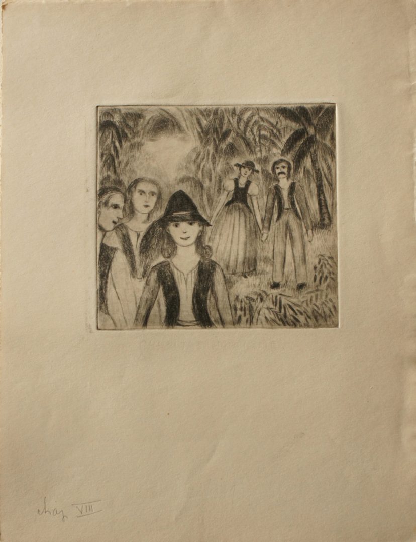 Personnages dans une palmeraie "Chap VIII" Artiste DISERENS Violette Numéro d'inventaire FAA-DV-1743 Titre inconnu Dénomination Personnages dans une palmeraie "Chap VIII" Dimensions sur chassis 25x19 cm Technique / Support Gravure Catégories Scène de genre Signature / Datation sans Remarques - plaque 10 x 10.5 cm - illustration pour le livre ""Robinson suisse" de Jean-David Wyss, édité chez Kaeser Agrandir l'image Découvrez l'artiste DISERENS Violette Lausanne (CH) 2 juin 1888 / 27 avril 1965 Peinture, Gravure Fonds géré par la FAA Consulter sa fiche