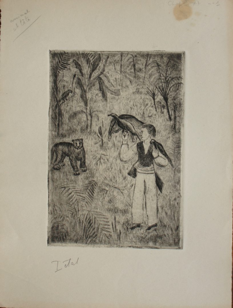 Fauconnier et fauve Artiste DISERENS Violette Numéro d'inventaire FAA-DV-1753 Titre inconnu Dénomination Fauconnier et fauve Dimensions sur chassis 25x19 cm Technique / Support Gravure Catégories Scène de genre Signature / Datation "Violette Diserens" bg Remarques - plaque 15.5 x 10.5 cm - illustration pour le livre ""Robinson suisse" de Jean-David Wyss, édité chez Kaeser Agrandir l'image Découvrez l'artiste DISERENS Violette Lausanne (CH) 2 juin 1888 / 27 avril 1965 Peinture, Gravure Fonds géré par la FAA Consulter sa fiche