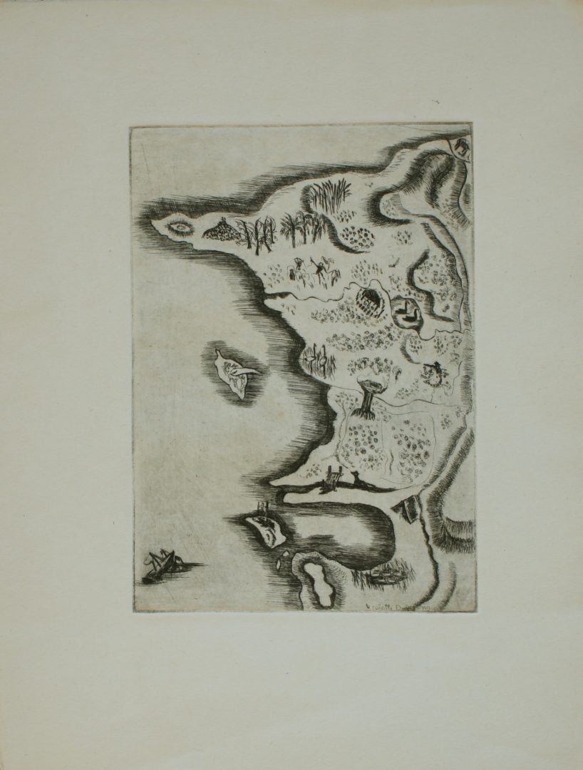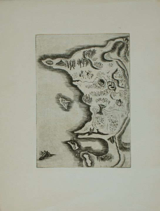 Plan de l'île Artiste DISERENS Violette Numéro d'inventaire FAA-DV-1798 Titre inconnu Dénomination Plan de l'île Dimensions sur chassis 24.5x19 cm Technique / Support Gravure Catégories Paysage Signature / Datation "Violette Diserens" bd Remarques - plaque 15.7 x 10.7 cm - illustration pour le livre ""Robinson suisse" de Jean-David Wyss, édité chez Kaeser Agrandir l'image Découvrez l'artiste DISERENS Violette Lausanne (CH) 2 juin 1888 / 27 avril 1965 Peinture, Gravure Fonds géré par la FAA Consulter sa fiche
