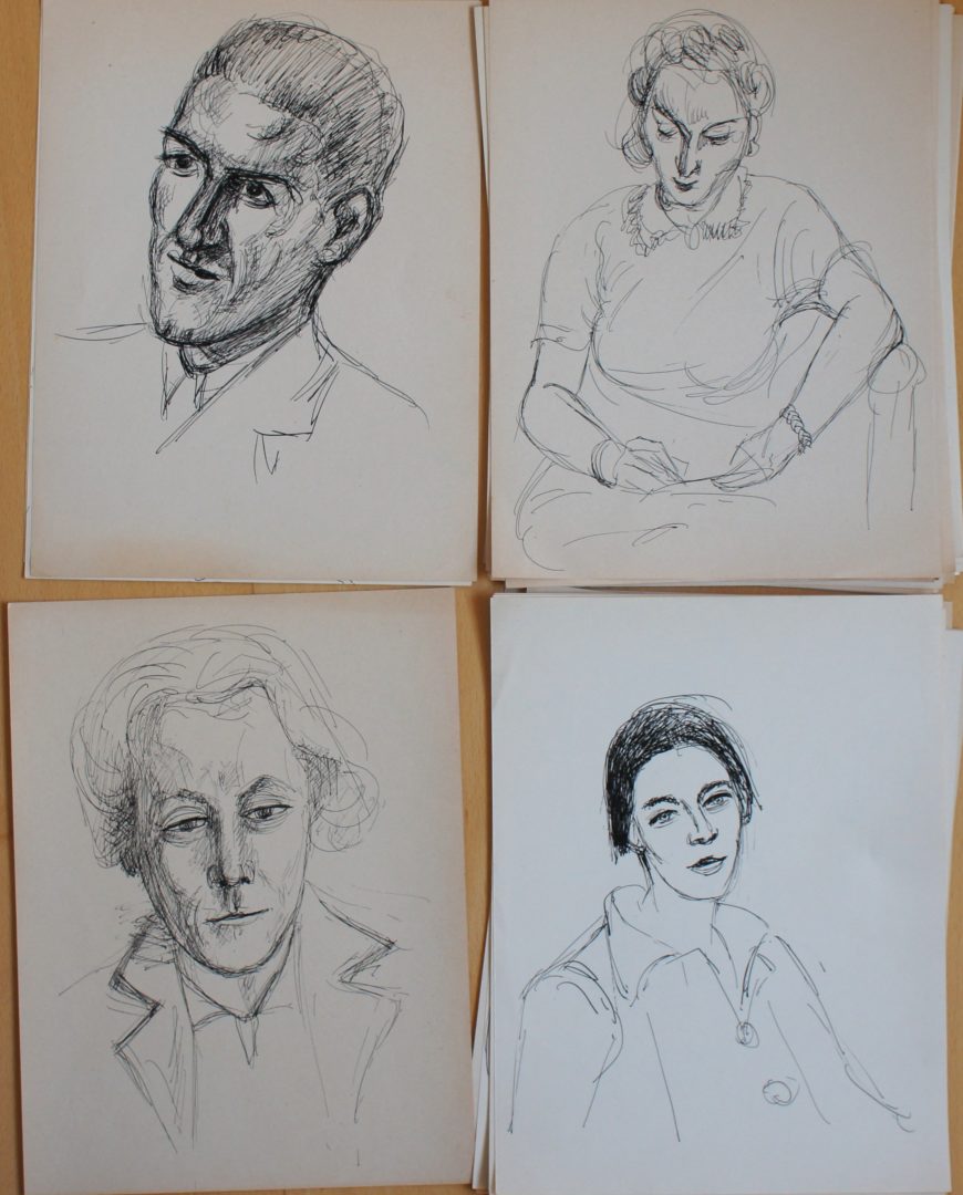 Portraits d'homme et de femmes Artiste DISERENS Violette Numéro d'inventaire FAA-DV-1814 Titre inconnu Dénomination Portraits d'homme et de femmes Dimensions sur chassis 25x19 cm Technique / Support Encre Catégories Portrait Signature / Datation sans Remarques - 1 des dessins 21 x 21 cm Agrandir l'image Découvrez l'artiste DISERENS Violette Lausanne (CH) 2 juin 1888 / 27 avril 1965 Peinture, Gravure Fonds géré par la FAA Consulter sa fiche