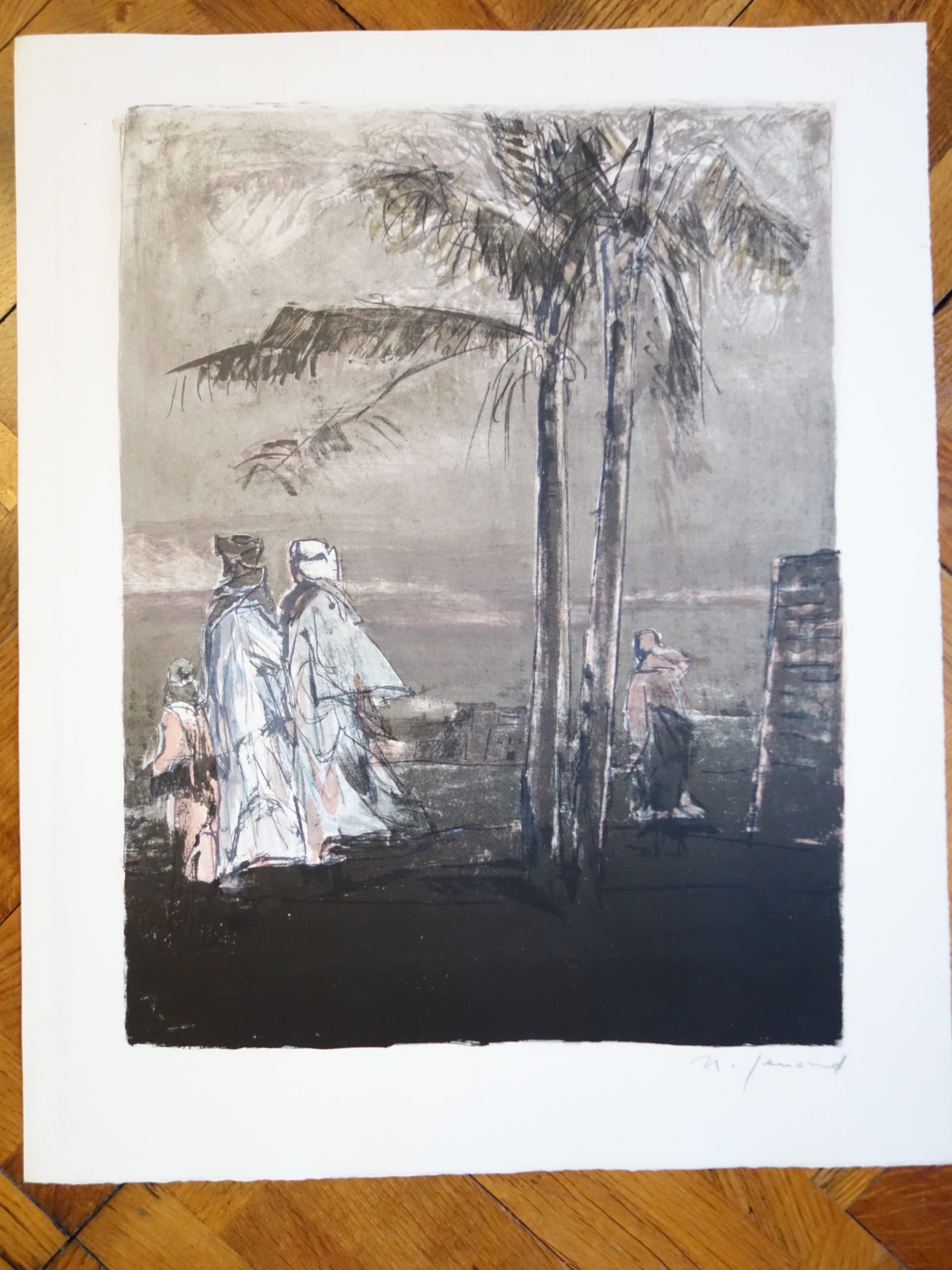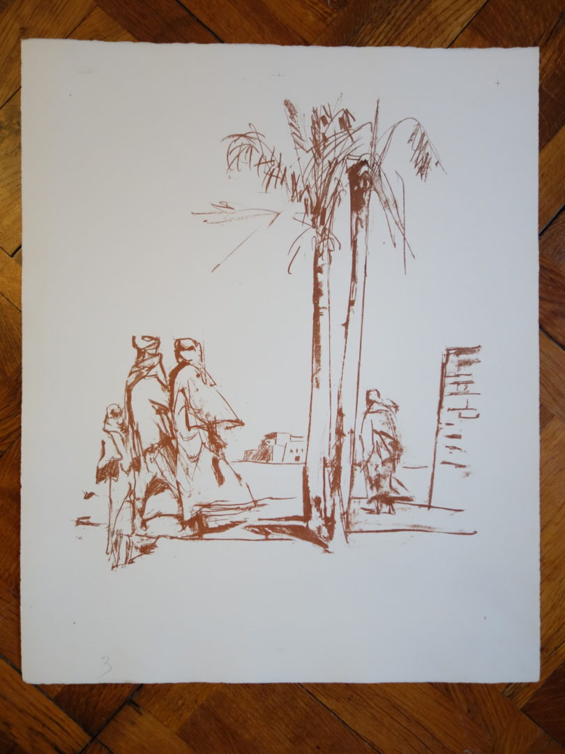 Khamsin – Hommes et palmiers (version « nuit ») Artiste GENOUD Nanette Numéro d'inventaire FAA-GN-2659 Titre Khamsin – Hommes et palmiers (version « nuit ») Dimensions sur chassis 56x45 cm Technique / Support Lithographie, Couleur Catégories Scène de genre Signature / Datation "N. Genoud" sur certaines épreuves Remarques - 1 épreuve de couleur signée - 17 épreuves de couleur non signées - 4 épreuves noir-blanc, dont 1 signée - 2 épreuves brunes non signées Agrandir l'image Découvrez l'artiste GENOUD Nanette (CH) 9 avril 1907 / 30 novembre 1987 Fonds géré par la FAA Consulter sa fiche Images complémentaires GENOUD Nanette – Khamsin – Hommes et palmiers (version « nuit ») – Lithographie, Couleur, 56x45 cm – Scène de genre GENOUD Nanette – Khamsin – Hommes et palmiers (version « nuit ») – Lithographie, Couleur, 56x45 cm – Scène de genre GENOUD Nanette – Khamsin – Hommes et palmiers (version « nuit ») – Lithographie, Couleur, 56x45 cm – Scène de genre