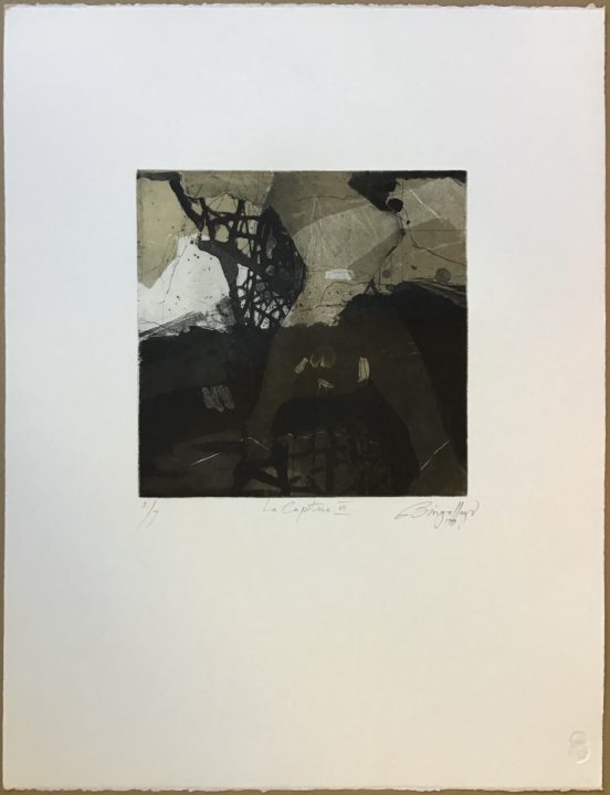La Capture VII Artiste BOISGALLAYS Maya Numéro d'inventaire FAA-BM-6138 Titre La Capture VII Disponibilité Œuvre inaliénable Année 1999 Technique / Support Aquatinte, Eau forte, Papier Catégories Non figuratif Signature / Datation « Boisgallays /1999 » Remarques - Une épreuve titrée, signée, datée, et justifiée 2/7 - gaufrage bd Agrandir l'image Découvrez l'artiste BOISGALLAYS Maya Montreux (CH, F) 1949 Peinture, Peinture à l'huile, Xylographie, Lithographie, Gravure, Dessin, Aquarelle Fonds géré par la FAA Consulter sa fiche