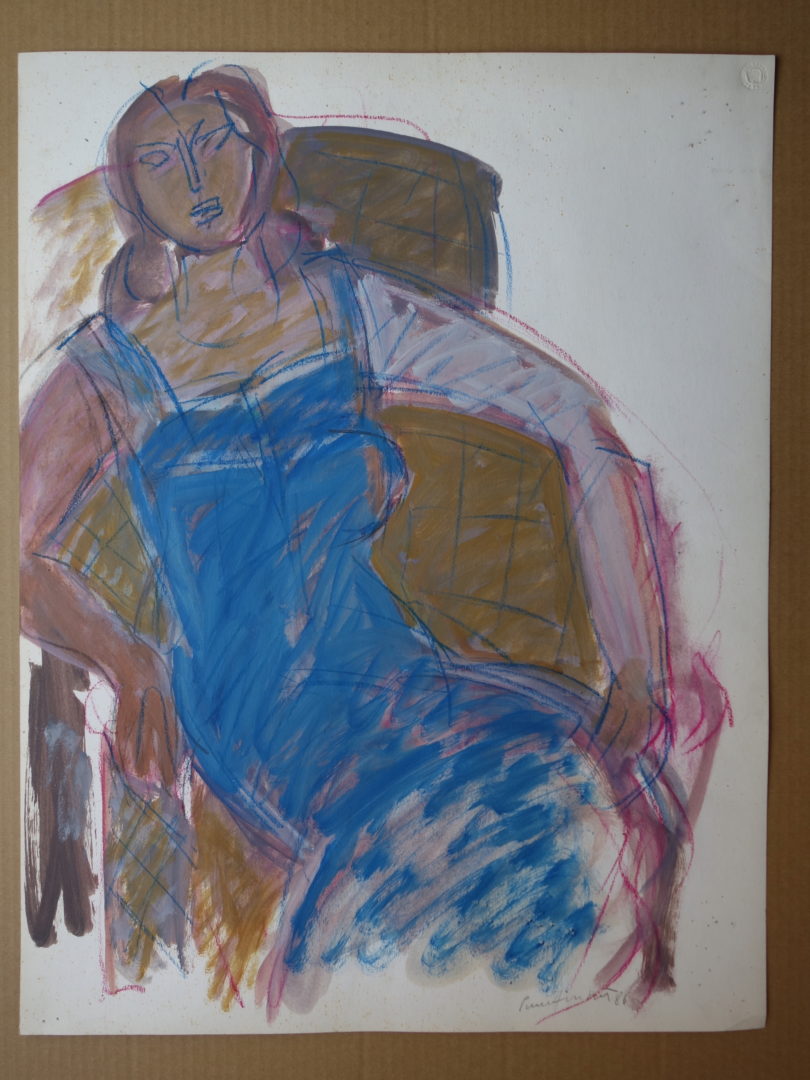 La dame bleue au fauteuil Artiste PIERRE-HUMBERT Charles Numéro d'inventaire FAA-PHC-2900 Titre La dame bleue au fauteuil Disponibilité Œuvre inaliénable Année 1986 Dimensions sur chassis 65x50 cm Technique / Support Gouache, Craie grasse Catégories Figure Signature / Datation "PierreHumbert 86" bd Remarques Titre au dos Agrandir l'image Découvrez l'artiste PIERRE-HUMBERT Charles Thielle (NE) (CH) 10 septembre 1920 / 20 octobre 1992 Peinture, Lithographie, Mosaïque, Vitrail Fonds géré par la FAA Consulter sa fiche