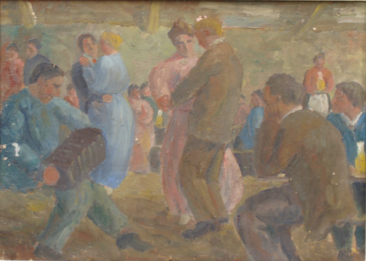 La danse du village Artiste DISERENS Violette Numéro d'inventaire FAA-DV-1590 Titre La danse du village Dimensions sur chassis 33xy46.5 cm Technique / Support Huile, Ardoise Catégories Scène de genre Signature / Datation sans Remarques - titre au verso peinture écaillée en plusieurs endroits et soulèvement de la couche picturale - étude d’une paysage au verso Agrandir l'image Découvrez l'artiste DISERENS Violette Lausanne (CH) 2 juin 1888 / 27 avril 1965 Peinture, Gravure Fonds géré par la FAA Consulter sa fiche Images complémentaires DISERENS Violette – La danse du village – Huile, Ardoise, 33xy46.5 cm – Scène de genre DISERENS Violette – La danse du village – Huile, Ardoise, 33xy46.5 cm – Scène de genre